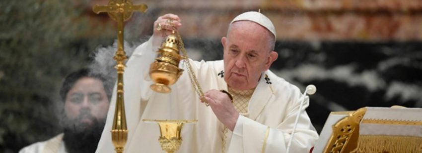 Una somera celebración ante unos pocos fieles ha sustituido en el año del coronavirus a la ya tradicional visita del papa Francisco a algunas de las “periferias” de la sociedad en la tarde del Jueves Santo. El pontífice ha presidido la misa de la Cena del Señor en la basílica de San Pedro tras haber suspendido la misa crismal de la mañana. El Jueves Santo en la celebración se contemplan varias intenciones eucarística como la institución del sacerdocio o la conmemoración del día del Amor Fraterno.
