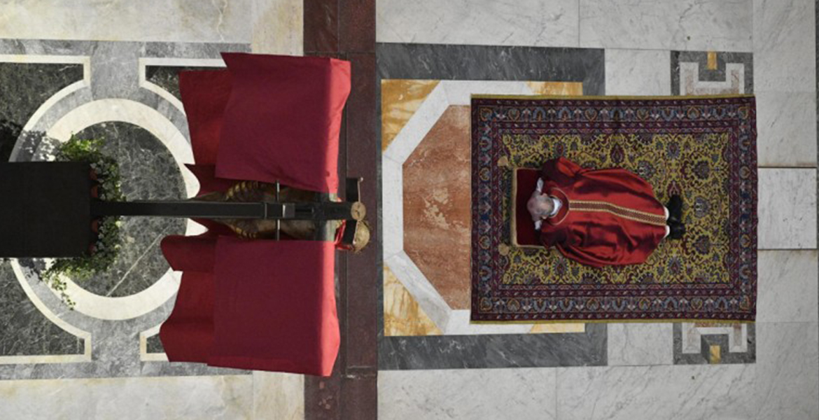 La celebración ha incluido, en la solemne oración universal del Viernes Santo, una oración especial “por quienes sufren en tiempo de pandemia”. Un recuerdo “por todos los que sufren las consecuencias de la pandemia actual: para que Dios Padre conceda la salud a los enfermos, fortaleza al personal sanitario, consuelo a las familias y la salvación a todas las víctimas que han muerto”. El Papa ha pedido a Dios: “mira compasivo la aflicción de tus hijos que padecen esta pandemia; alivia el dolor de los enfermos, da fuerza a quienes los cuidan, acoge en tu paz a los que han muerto y, mientras dura esta tribulación, haz que todos puedan encontrar alivio en tu misericordia”.