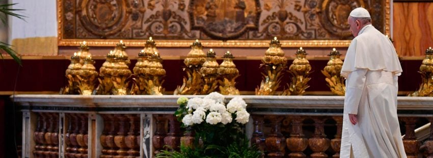 El papa Francisco ha mantenido este año la práctica habitual de no realizar la homilía en la misa, el discurso principal de la jornada queda para la bendición ‘Urbi et Orbi’, la más solemne de los pontífices. Entre las peculiares litúrgicas a las que ha olvidado la pandemia, además de la reducción de personas, la simplificación de los cantos o la llamada ‘distancia social’; está la omisión del rito del ‘Resurrexit’. Este elemento tradicional de la liturgia papal se recuperó en tiempos de Juan Pablo II durante el Jubileo del año 2000. Durante el canto, al comienzo de la celebración, los diáconos abrían las portezuelas de un icono bizantino de la Resurrección –el llamado icono Acheropita, es decir, no pintado por mano humana, que se encuentra en la basílica de San Juan de Letrán–.
