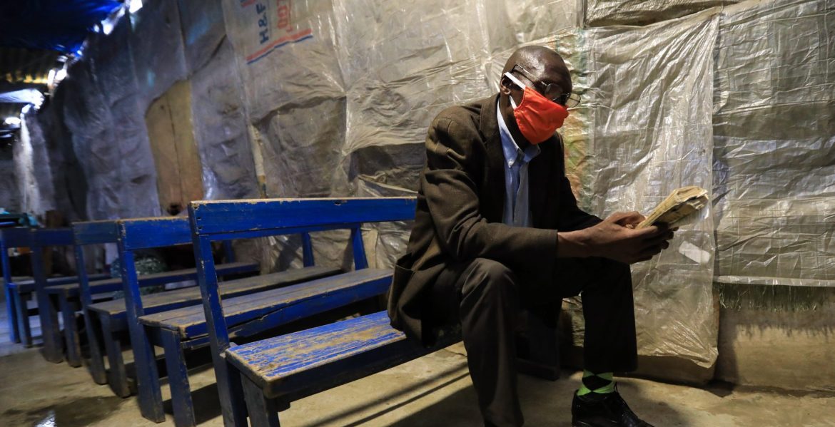 Un cristiano lee su biblia en una iglesia vacía de los suburbios de Nairobi (Kenia) durante el Domingo de Resurrección. EFE/ Daniel Irungu