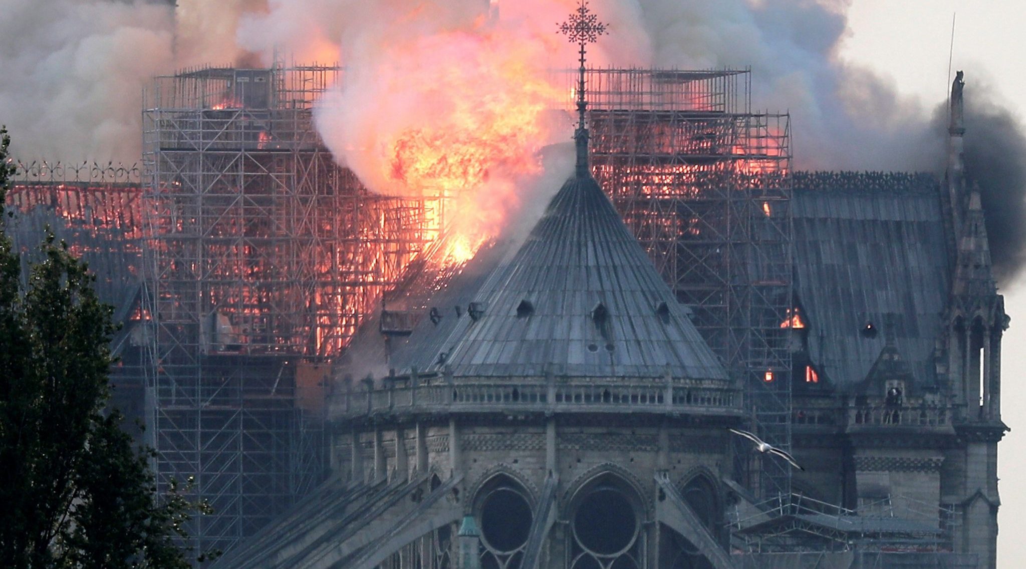 EPA9071. PARÍS (FRANCIA), 15/04/2019.- Vista de un incendio en la catedral de Notre Dame este lunes en París, Francia. La catedral de Notre Dame de París, uno de los monumentos más emblemáticos de la capital francesa, está sufriendo un incendio, según pudo constatar una periodista de Efe en el lugar. Un gran despliegue de bomberos trata de controlar las llamas, que salen sobre todo de la aguja central del templo, que es visitado por miles de personas cada día. EFE/ Ian Langsdon