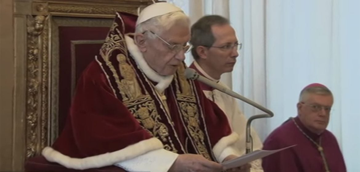 “No abandono la Iglesia, la serviré de otro modo”, explicó Benedicto XVI en su último ángelus el 24 de febrero de 2013 antes de retirarse y pasar a ser Papa emérito. Ya en su última audiencia el miércoles siguiente señaló además que su decisión de renunciar no supone “abandonar la Cruz”, sino mantenerse “en el servicio con la oración”. Un momento histórico.