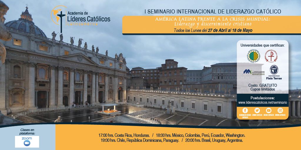 ‘América Latina frente a la crisis mundial: Liderazgo y discernimiento cristiano’. Bajo este nombre la Academia Latinoamericana de Líderes Católicos lanzó su Seminario Internacional de Liderazgo, en el cual ha reunido a expertos de la Iglesia del continente para abordar “las causas y consecuencias del coronavirus como también posibles caminos de reconstrucción y compromiso para los cristianos en la región”, han dicho sus organizadores.