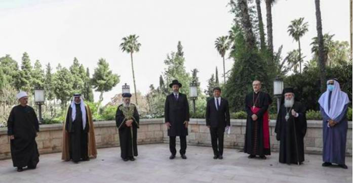 “En base a la verdadera fe en la solidaridad, llamamos a todos los ciudadanos del mundo a unir fuerzas y rezar juntos por la salud y la unidad”, subrayaron. La oración se ha llevado a cabo en el hotel King David de Jerusalén, con los muros de la Ciudad Vieja a sus espaldas. En él se reunieron los rabinos israelíes Itzhak Yosef y David Lau, el patriarca greco-ortodoxo Teófilos III, el administrador apostólico del Patriarcado Latino de Jerusalén, Pierbattista Pizzaballa, los imanes Gamal el Ubra y jeque Agel Al-Atrash y el líder espiritual druso, el jeque Mowafaq Tarif.