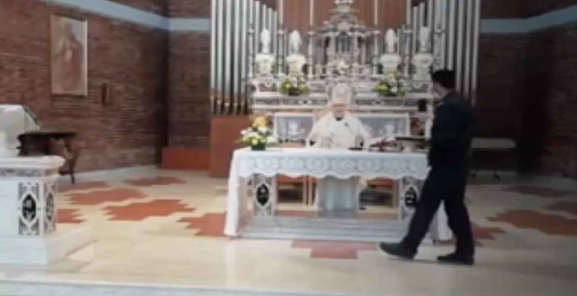 El Italia ha sido muy famosa la irrupción de los Carabinieri en una iglesia de Gallignano, en la provincia de Cremona, al norte del país cerca del epicentro de la pandemia. En las imágenes el sacerdote no se muestra colaborador: “Ahora no estoy disponible, estoy celebrando… Orad hermanos y hermanas…”, se oye en el vídeo mientras el cura continua con las ofrenda de la misa. El sacerdote, Lino Viola, ha descrito la irrupción de la misa dominical como un “abuso de poder”.