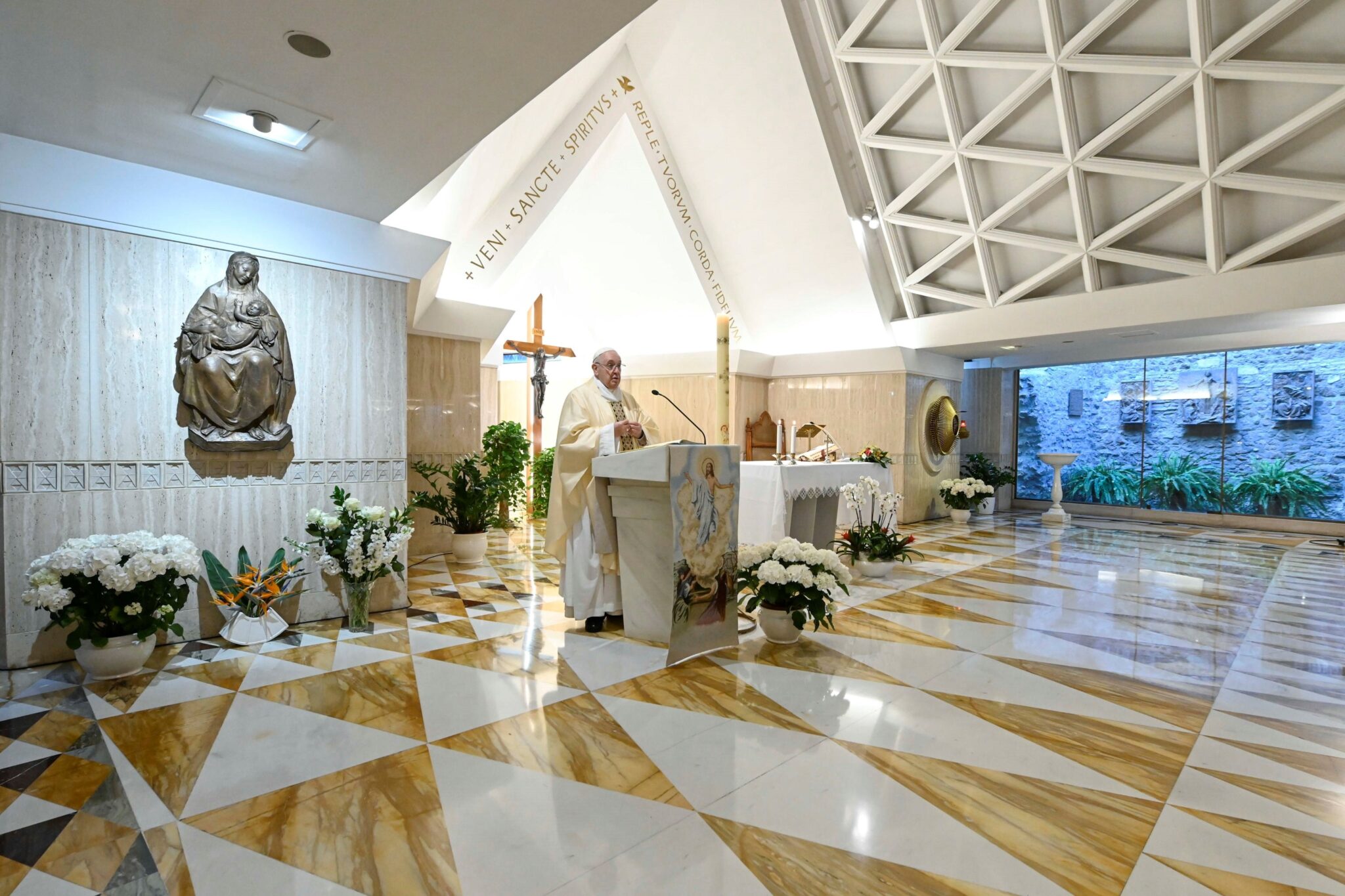 Vatican City (Vatican City State (holy See)), 23/04/2020.- A handout picture provided by the Vatican Media shows Pope Francis leading the mass at Casa Santa Marta, Vatican City, 23 April 2020. (Papa) EFE/EPA/VATICAN MEDIA / HANDOUT HANDOUT EDITORIAL USE ONLY/NO SALES