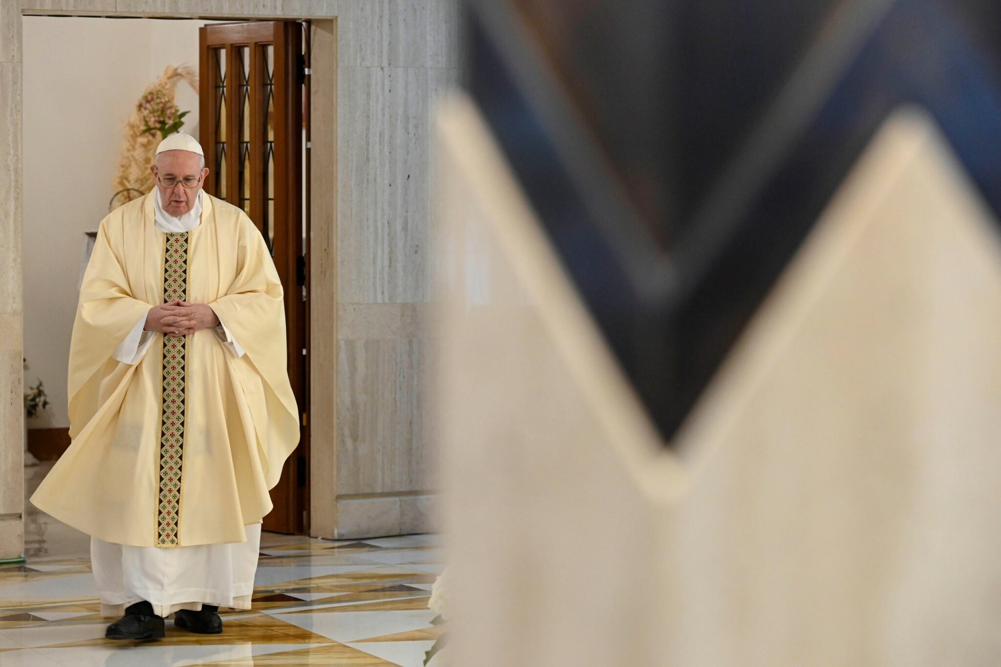 Vatican City (Vatican City State (holy See)), 23/04/2020.- A handout picture provided by the Vatican Media shows Pope Francis leading the mass at Casa Santa Marta, Vatican City, 23 April 2020. (Papa) EFE/EPA/VATICAN MEDIA / HANDOUT HANDOUT EDITORIAL USE ONLY/NO SALES