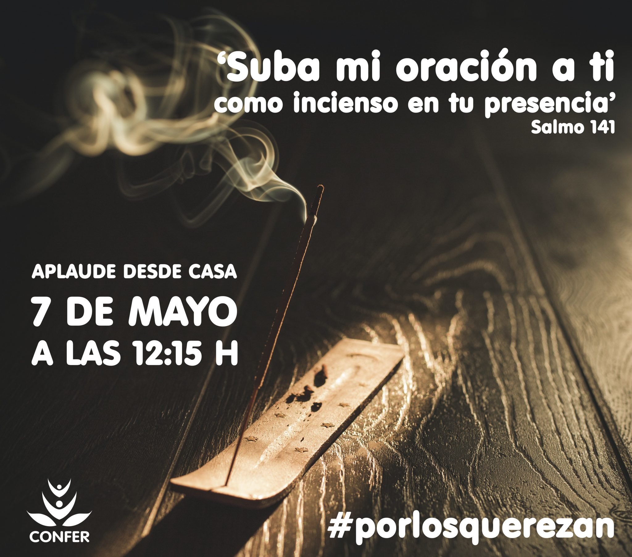 “Desde la CONFER queremos aplaudir y que os suméis a esta iniciativa para dar las gracias a todas esas personas que rezan, ya sean religiosos o laicos. Acompáñanos tras el ángelus el próximo jueves 7 de mayo. A las 12:15, desde tu salón, jardín, comunidad o ventana, aplaude por ellos, para que lo sigan haciendo, para que entre todos elevemos al Señor ese incienso que dice el salmo 141. ¡Estáis todos invitados!”, concluyen.