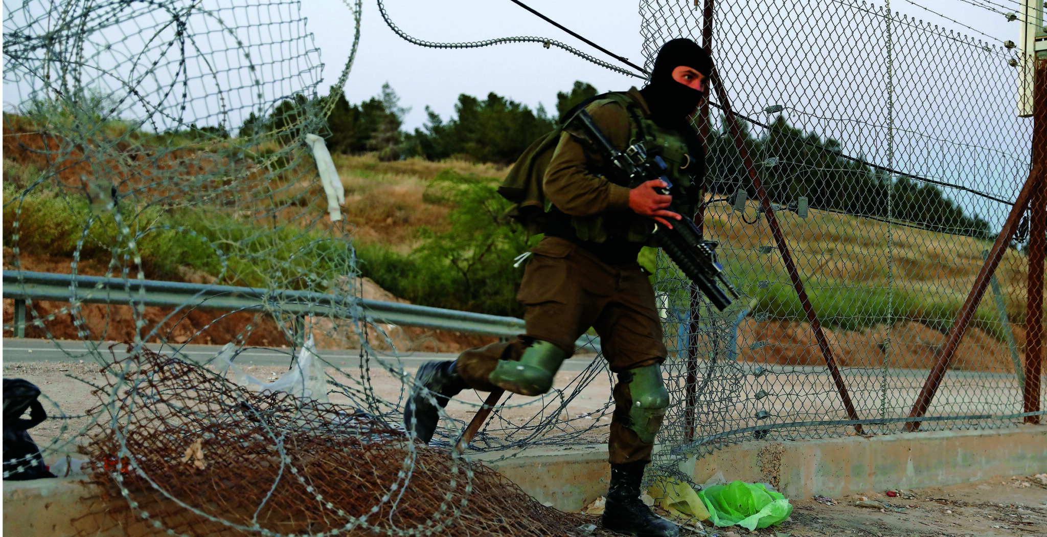 Hebron (...), 05/05/2020.- An Israeli forces officer prevents a Palestinian labourer (not pictured) from entering Israeli areas after illegally crossing the Israeli security fence near the West Bank city of Hebron, 05 May 2020, amid the ongoing coronavirus COVID-19 pandemic. Palestinian workers try to enter Israel after an entry ban was imposed amid concerns over the spread of the SARS-CoV-2 coronavirus which causes the COVID-19 disease. EFE/EPA/ABED AL HASHLAMOUN