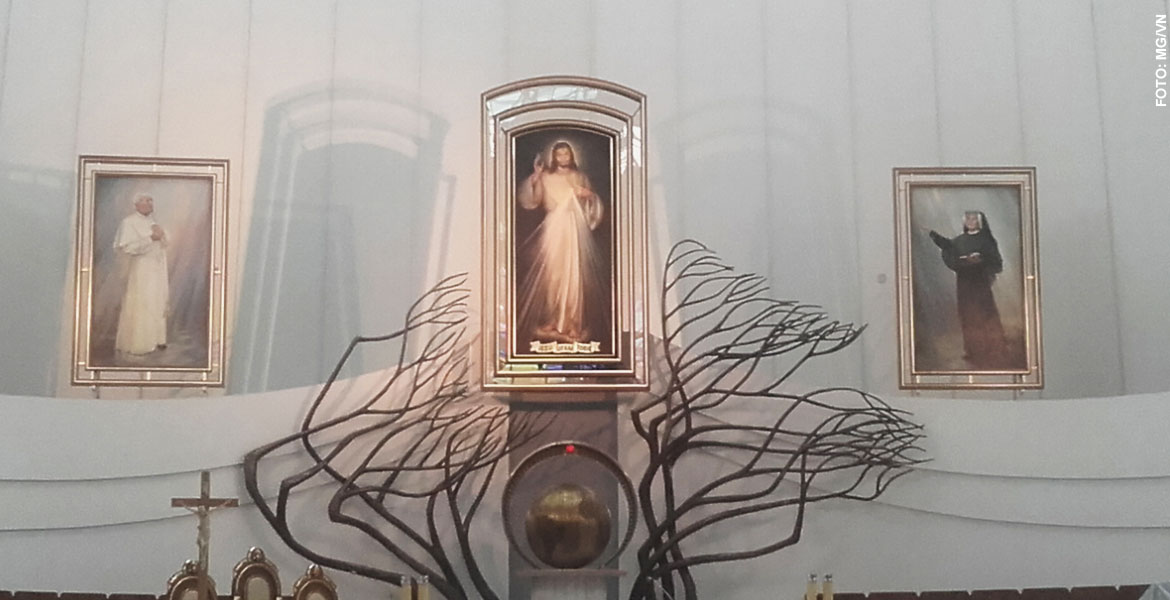 8. En una capilla del Centro San Juan Pablo II, junto al Cristo de la Divina Misericordia y santa Faustina Kowalska