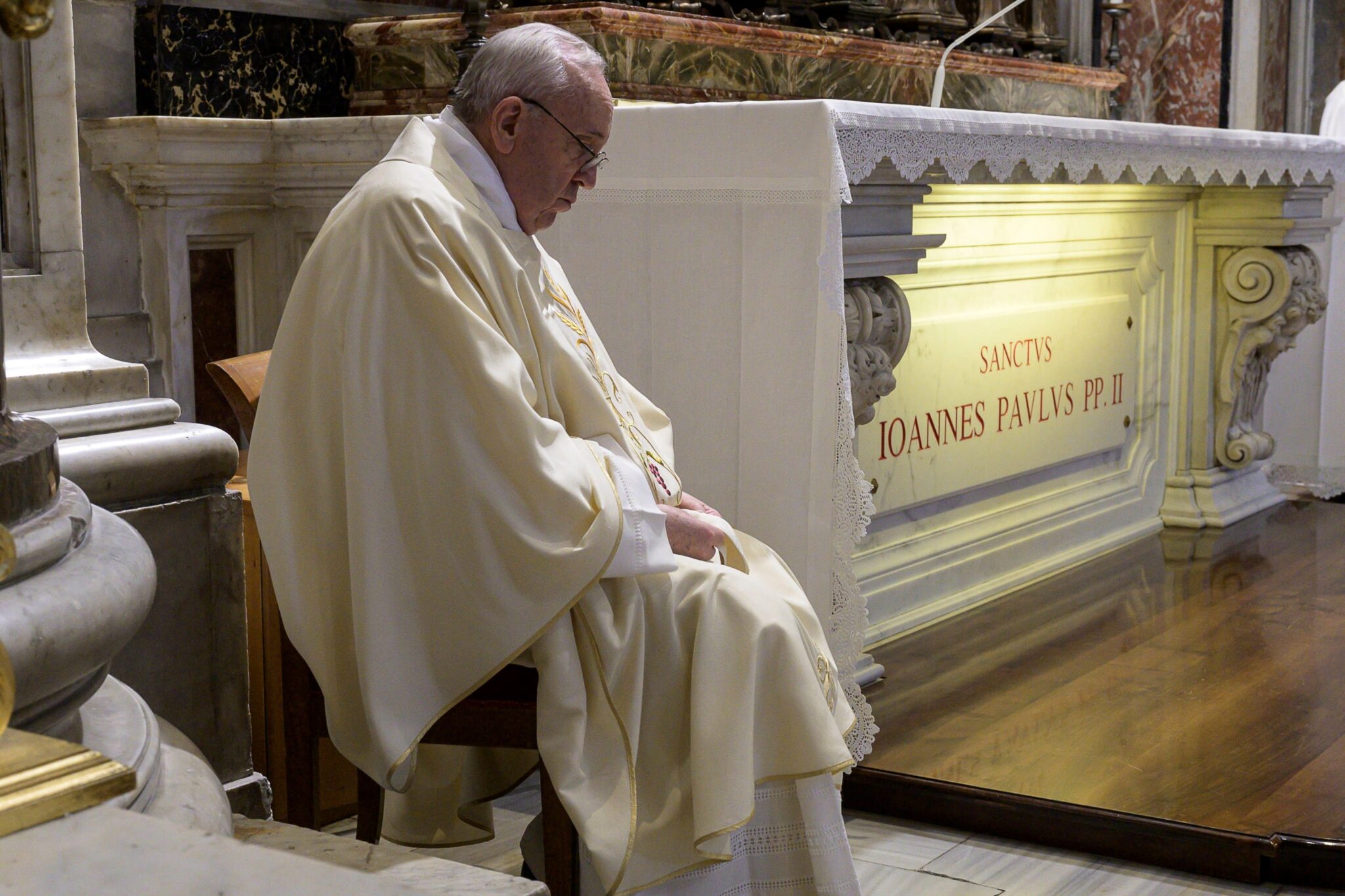 Vatican City (Vatican City State (holy See)), 18/05/2020.- Pope Francis leads a Mass at Saint Peter after the re-opening of the church due to the coronavirus emergency, Vatican City, 18 May 2020. The Mass was dedicated to the memory of Saint John Paul II to celebrate the centenary of his birth. (Papa, Abierto) EFE/EPA/VATICAN MEDIA / HO HANDOUT EDITORIAL USE ONLY/NO SALES