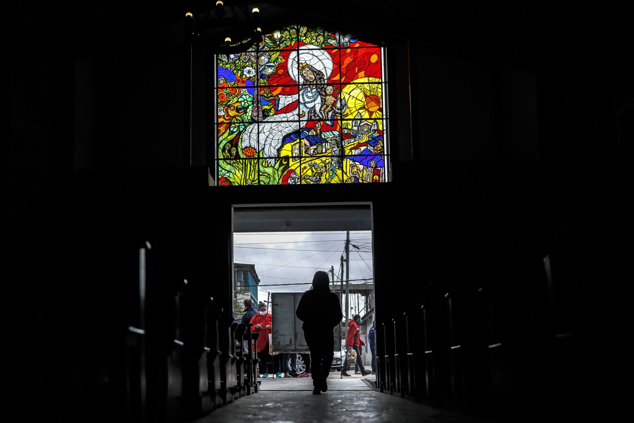 ACOMPAÑA CRÓNICA ARGENTINA POBREZA***AME8993. BUENOS AIRES (ARGENTINA), 10/05/2020.- Una mujer entra el domingo 10 de mayo a una iglesia para recibir alimentos en plena crisis por la pandemia COVID-19, en Buenos Aires (Argentina). Liliana aún está recuperándose del dengue, pero tiene claro que sus vecinos más mayores la necesitan en estos tiempos de confinamiento. Junto a Leónida, herida para siempre por el asesinato de su hijo hace tres años, camina decidida por el barrio pobre más grande de Buenos Aires, donde el coronavirus ha cambiado una rutina ya acostumbrada a lidiar con la adversidad. EFE/Juan Ignacio Roncoroni