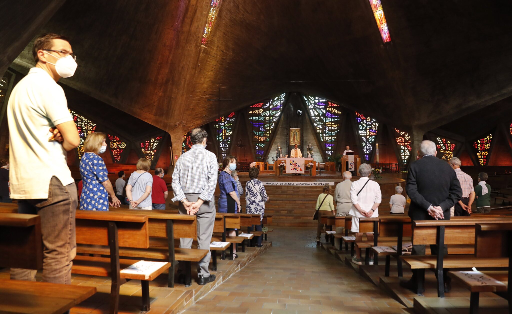 La iglesia, regentada por los misioneros del Espíritu Santo, ubicada en el distrito de Chamartín y conocida como “El Sombrerito”, ha celebrado tres celebraciones este domingo. Un regreso a medio gas por la limitación del aforo que no permite más de 200 personas por misa. Pero, también, porque el miedo sigue presente en la capital de España, una de las ciudades más castigadas por la epidemia del coronavirus. De ahí que, de momento, mantengan las retransmisiones ‘online’.