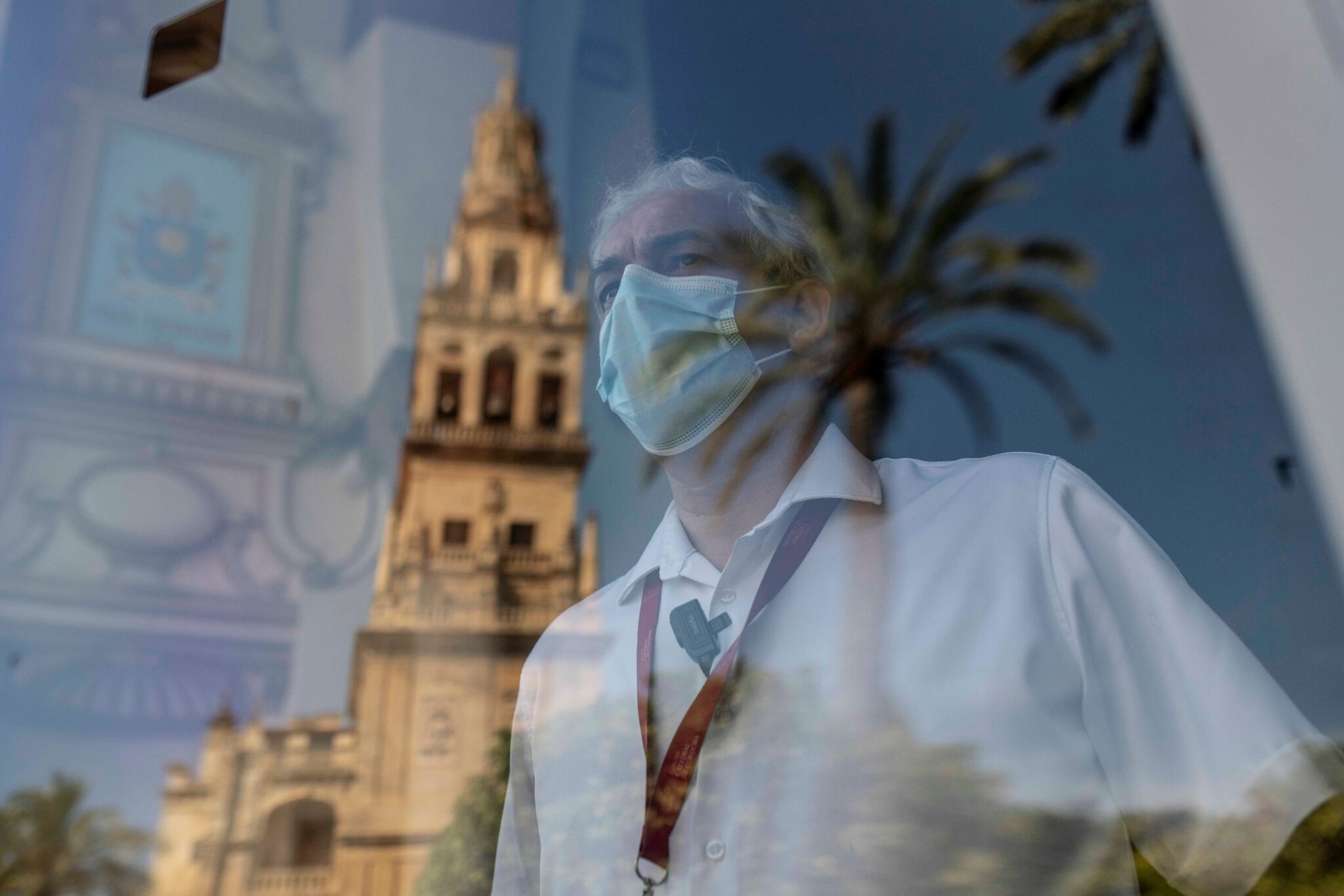 Un trabajador, ante la catedral mezquita de Córdoba