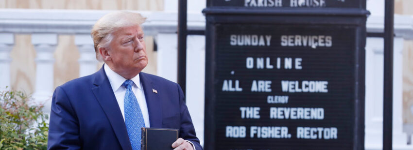 Nada más terminar esta declaración, el mandatario estadounidense ha acudido a la cercana iglesia de St. John’s, cuyo sótano ardió en los disturbios del pasado domingo en Washington, y, biblia en mano, se ha fotografiado ante ella. En declaraciones a ‘The Washington Post’, Mariann E. Bude, la obispa responsable de esta comunidad episcopaliana, ha deplorado que Trump haya utilizado su templo como “decorado” en un acto “propagandístico” en el que ha dejado “un mensaje antitético de las enseñanzas de Jesús” y para el que no le ha solicitado ningún permiso previo, lo que siente como “indignante”.