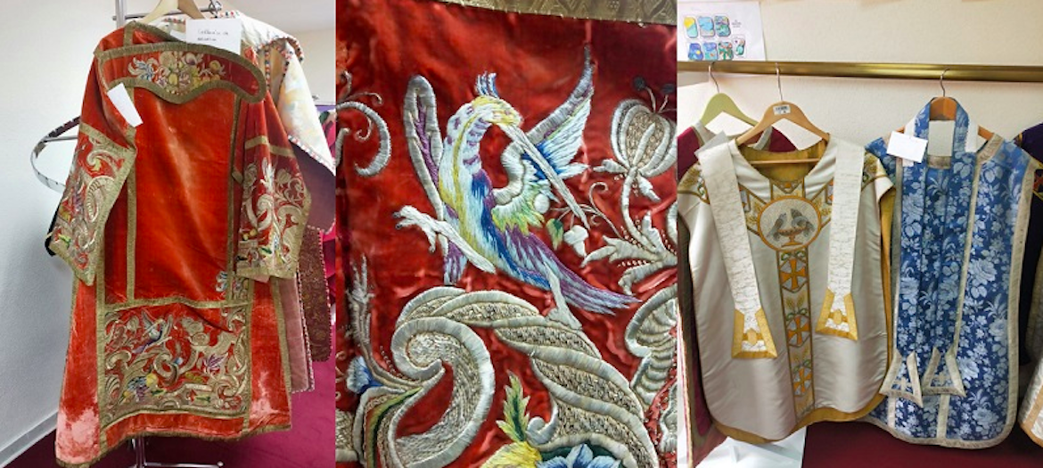 Entre las piezas más destacables se encuentra una dalmática del año 1620 y otra con collarín datada de 1678; los bordados en oro con hilos y alambres; algunos de los paños para cubrir el cáliz y unos ternos encarnados de brocatel de Venecia, del siglo XVII.