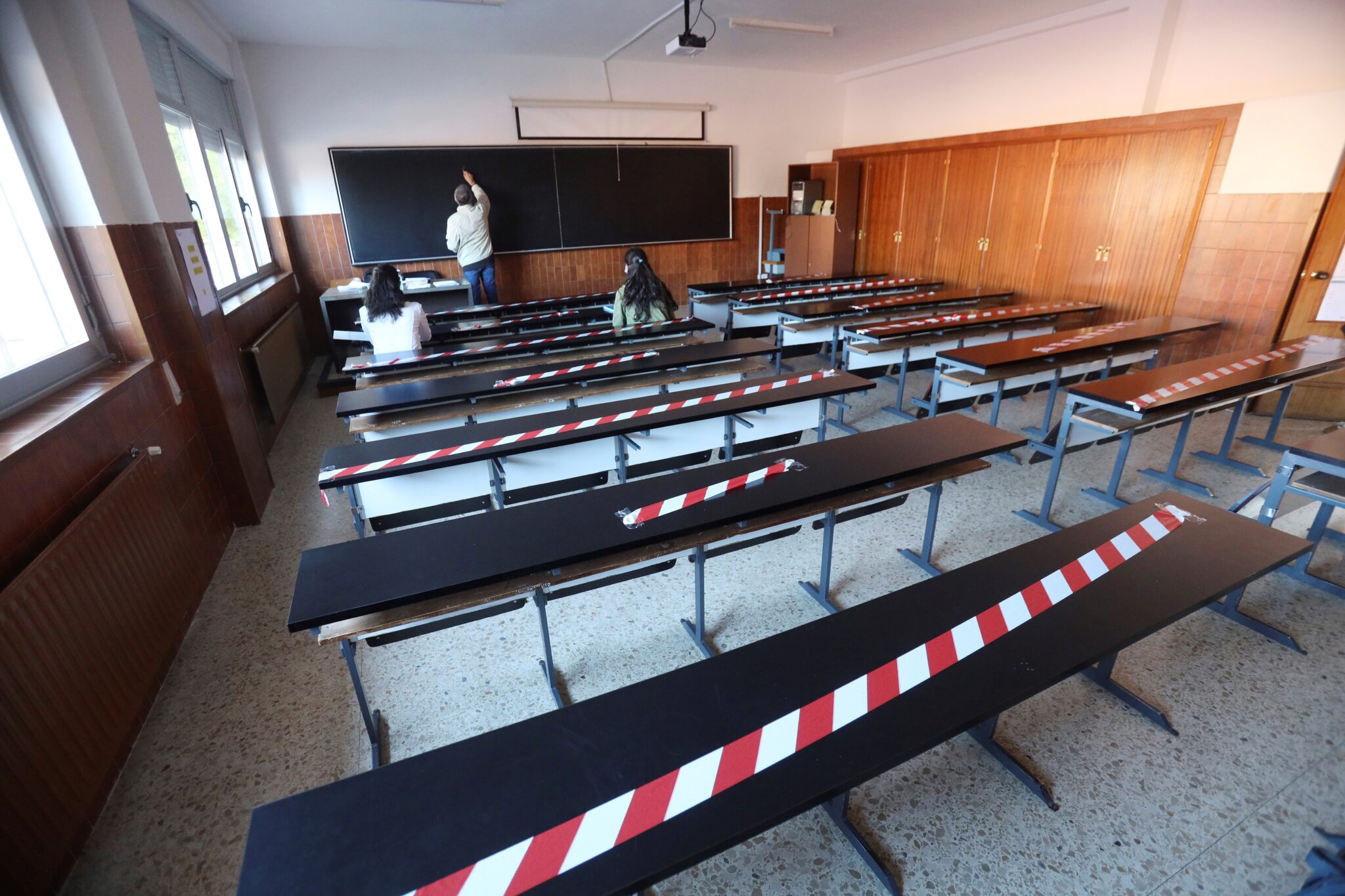 GRAF895. SALAMANCA, 15/06/2020.- Alumnos de segundo de bachillerato retoman este lunes las clases para la preparación de la EBAU, con las medidas de seguridad que requiere la fase 2 establecidas por el gobierno en Salamanca. EFE/JM García
