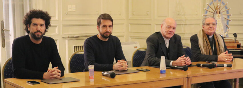 El Presidente de la CEA, Oscar Ojea, Obispo de San Isidro; su Auxiliar y Presidente de dicha comisión, Guillermo Caride, y los responsables de la agencia de marketing digital Casa Kiev, fueron los encargados de la presentación del programa de financiamiento eclesial.
