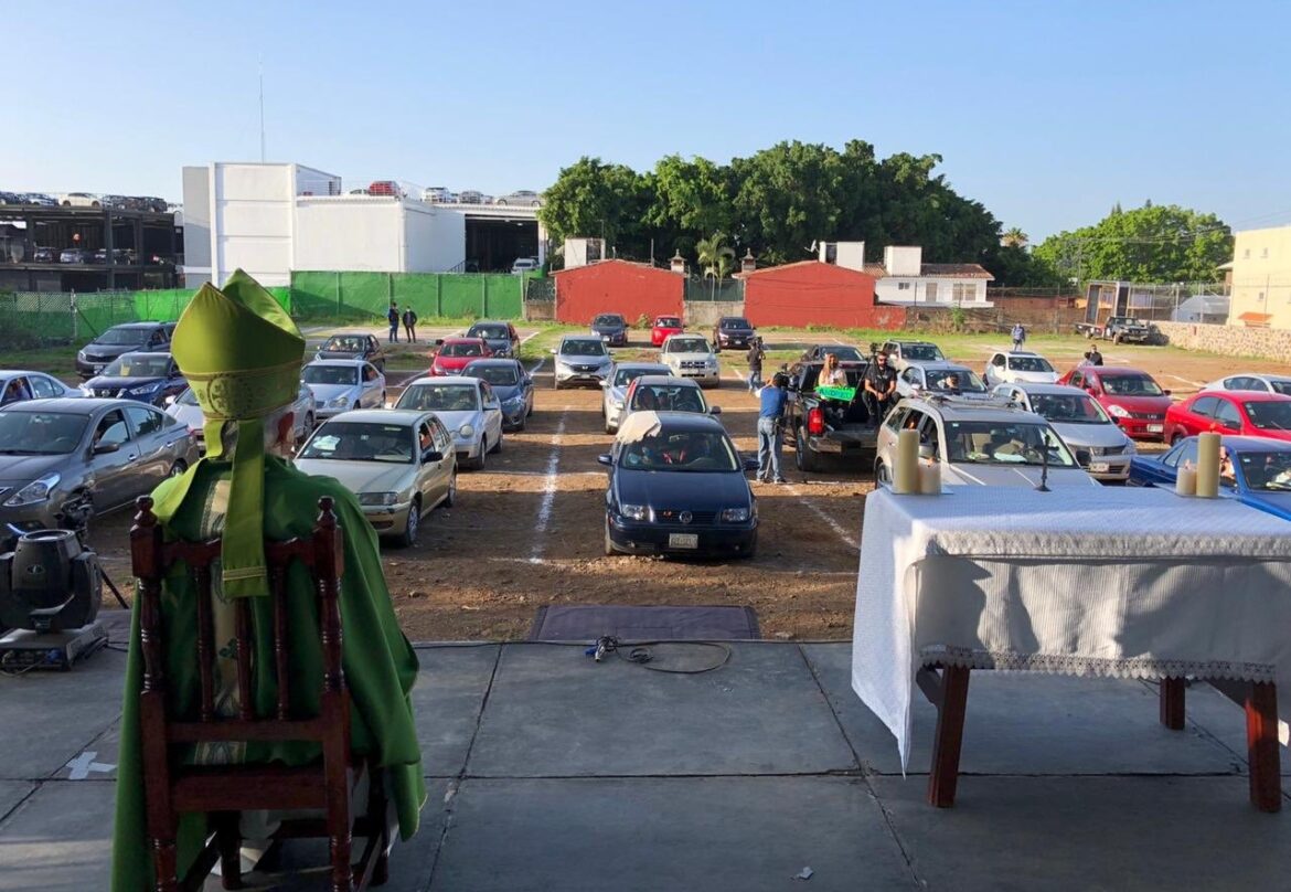 En diferentes diócesis mexicanas se han celebrado desde junio pasado misas en las que los fieles participan desde su automóvil, pero en esta ocasión fue un obispo quien la presidió, y en un espacio que de ordinario se utiliza como autocinema.