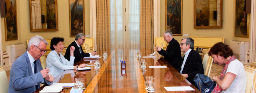 La Iglesia y el Gobierno vuelven a sentarse a dialogar. Y es que hoy, 30 de julio, el secretario general y portavoz de la Conferencia Episcopal Española, Luis Argüello; el presidente de la Comisión Episcopal para la Educación y Cultura, Alfonso Carrasco; y la recién nombrada como secretaria técnica de esta Comisión, Raquel Pérez, han mantenido un encuentro con la ministra de Educación y Formación Profesional, María Isabel Celaá; así como con el Secretario de Estado de Educación, Alejandro Tiana; y el subsecretario de Educación y Formación Profesional, Fernando Gurrea.