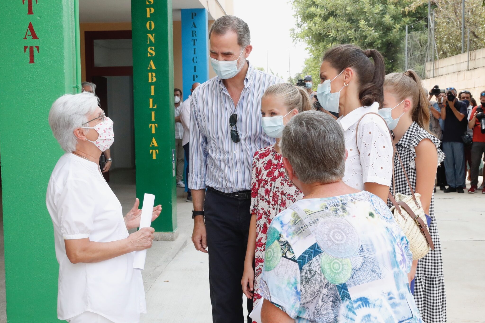 En esta visita, la familia real estuvo acompañada por la presidenta de Baleares, Francina Armengol; la ministra de Educación y Formación Profesional, Isabel Celaá; el presidente del Parlamento de Baleares, Vicenç De Paül Thomás; la delegada del Gobierno, Aina Calvo; la presidenta del Consell, Catalina Cladera y otras autoridades autonómicas y municipales; además de la directora del Centro socioeducativo Naüm, Margalida Jordá. Los Reyes, la Princesa de Asturias y la Infanta Doña Sofía fueron saludados por los patrocinadores del proyecto Naüm y por los trabajadores y alumnos del centro.