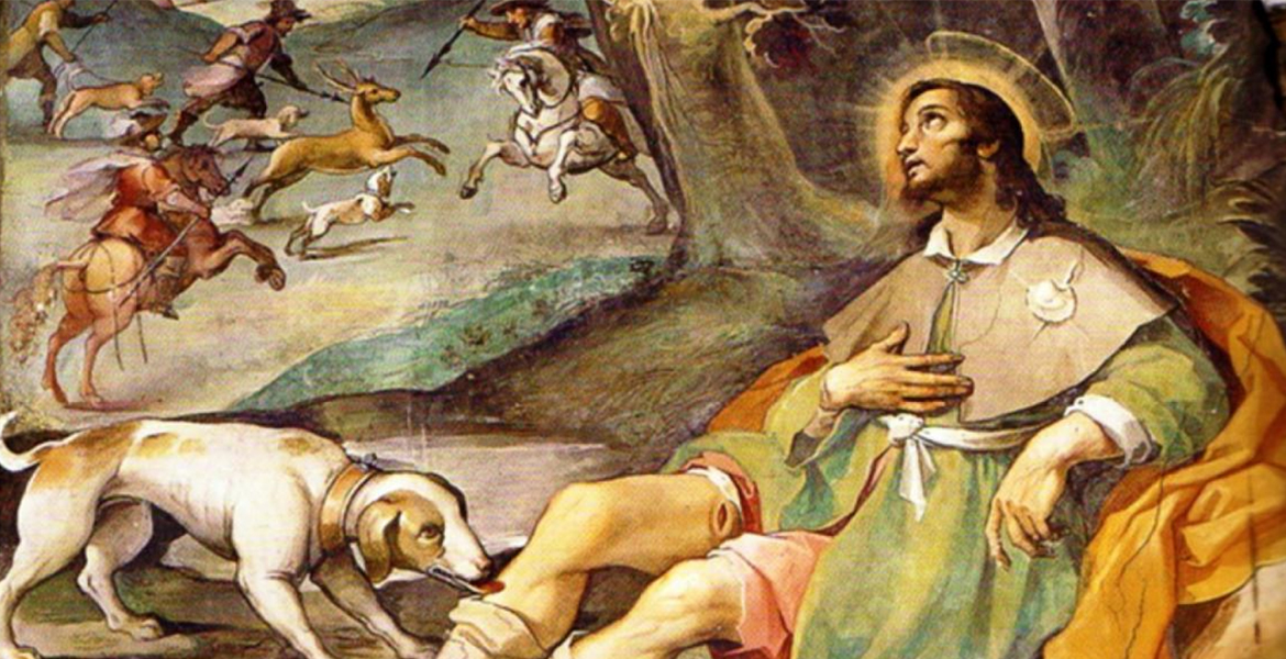 Un intercesor clásico en tema de “pestes” y pandemias a la hora de dirigir unas rogativas, es san Roque de Montpellier, cuya fiesta –en formato confinamiento y distancia social– se celebra este 16 de agosto. Este peregrino del Tercera Orden de san Francisco es representado con un perro que lleva un pan en la boca y mostrando las llagas recuerdan su peregrinaje por toda Italia curando a los enfermos de la peste. Por ello es el protector de hospitales y cofradías dedicados al cuidado de las epidemias. Son tantos los pueblos que están bajo su patrocinio que es el protector habitual de peregrinos, enfermeros, cirujanos –además de los perros–.