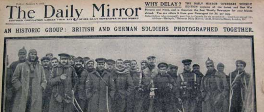 Uno de los episodios documentados más curiosos de la Primera Guerra Mundial (1914-1918) se dio en la Navidad de 1914, la primera de un conflicto bélico que alcanzó una dimensión global y que se caracterizó por la importancia de las trincheras en el frente. Causó un impacto tan grande que lo recogió así un periódico como ‘The Daly Mirror’: “Un grupo histórico: soldados británicos y alemanes se fotografían juntos”.