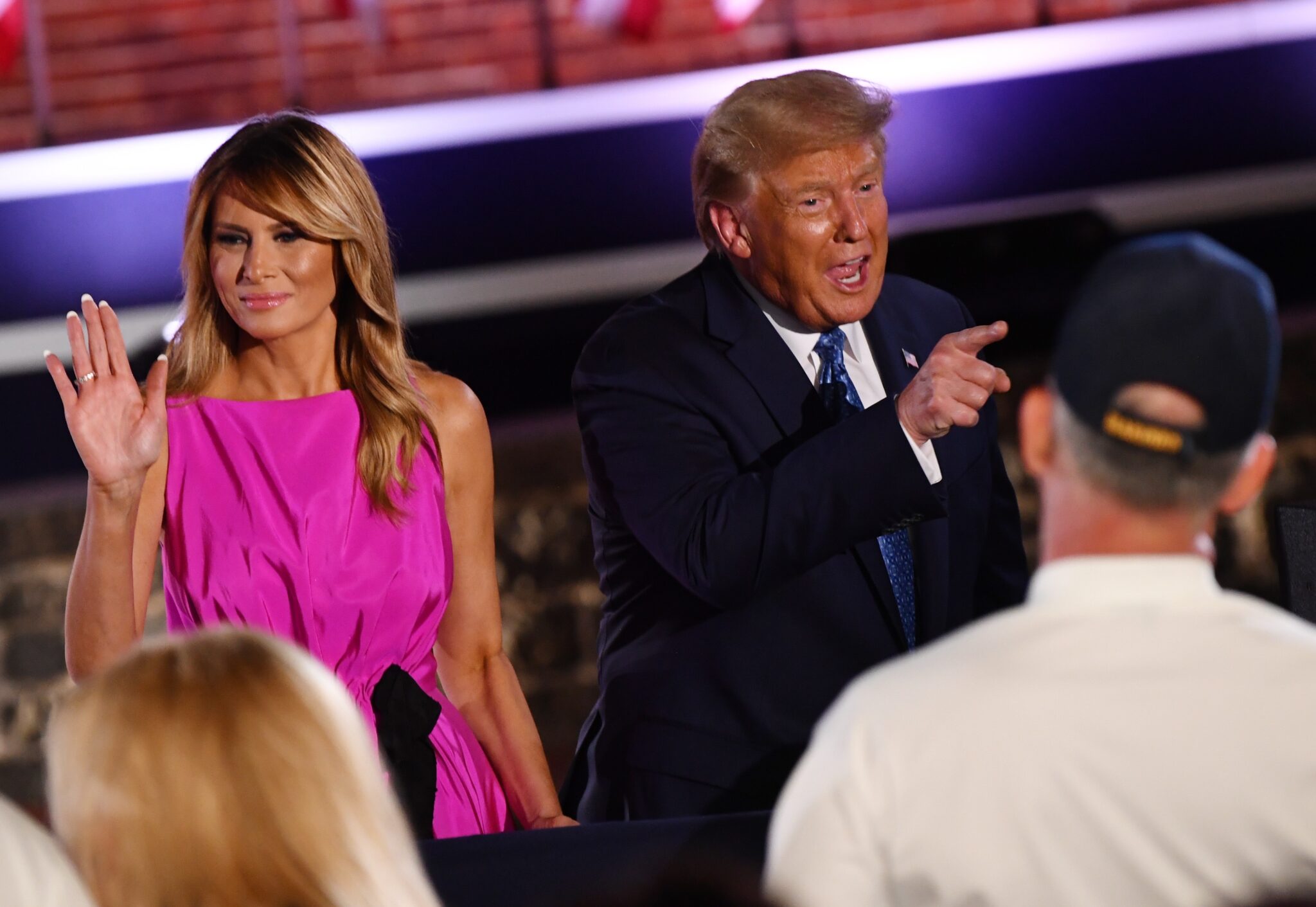 Baltimore (United States), 27/08/2020.- US President Donald J. Trump (R) and First Lady Melania Trump (L) attend the third night of the Republican National Convention, at Fort McHenry in Baltimore, Maryland, USA, 26 August 2020. (Elecciones, Estados Unidos) EFE/EPA/KEVIN DIETSCH / POOL