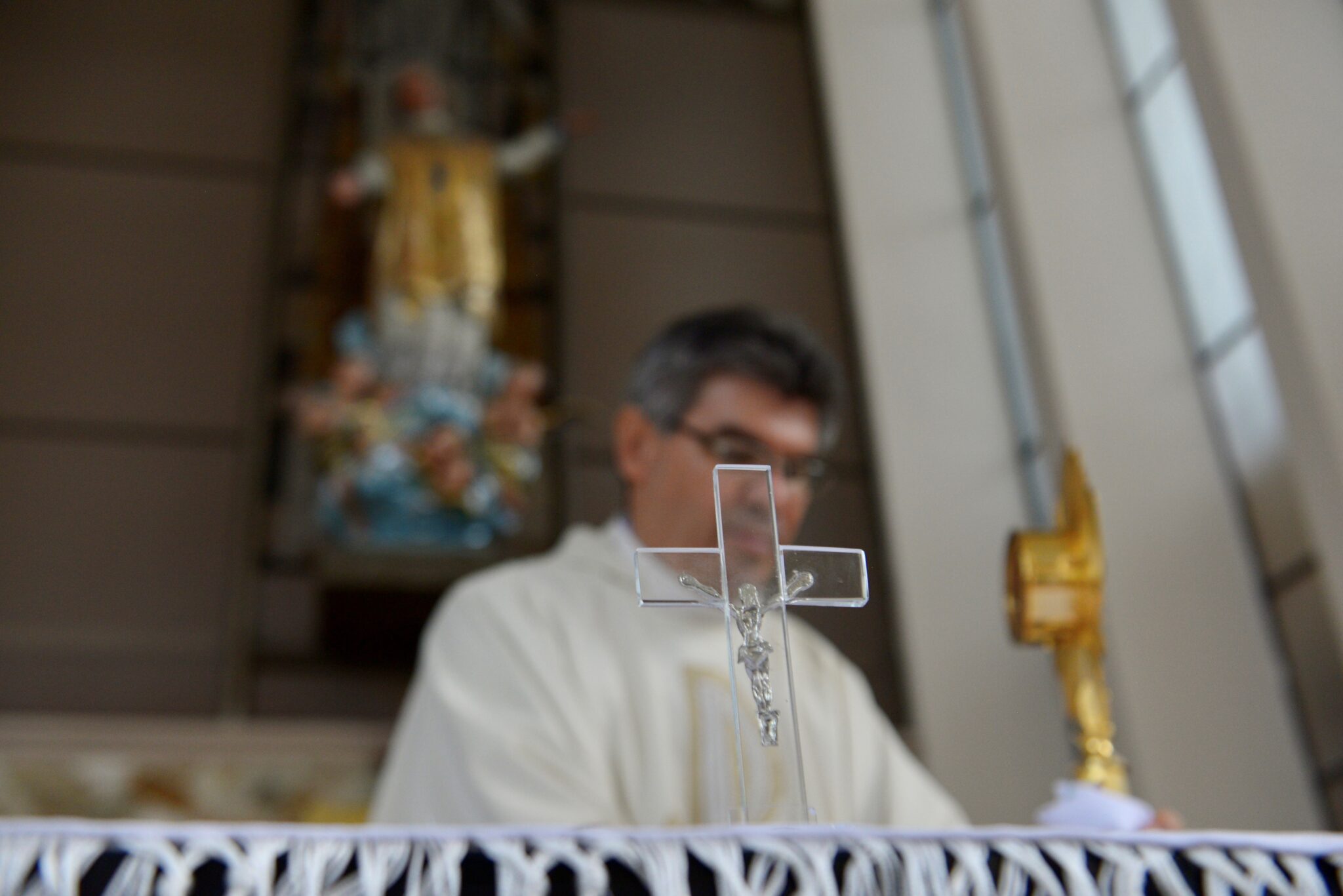 ACOMPAÑA CRÓNICA: CORONAVIRUS ECUADOR - QUI01. GUAYAQUIL (ECUADOR), 02/05/2020. Imagen del pasado 30 de abril del 2020, del párroco de la iglesia San Juan Bosco, Edilberto Torres, durante la misa virtual en el centro sur de Guayaquil (Ecuador). El padre Torres contó a Efe que desde el 14 de marzo, cuando la Conferencia Episcopal Ecuatoriana anunció el cierre de los templos, reorganizó su horario y forma de trabajar para "seguir velando por el fortalecimiento espiritual de sus fieles". Los sacerdotes de la ciudad costera de Guayaquil, la más afectada en Ecuador por el COVID-19, han debido reinventarse para mantener la guía espiritual mientras las iglesias se mantienen cerradas y los velatorios prohibidos. EFE/Marcos Pin