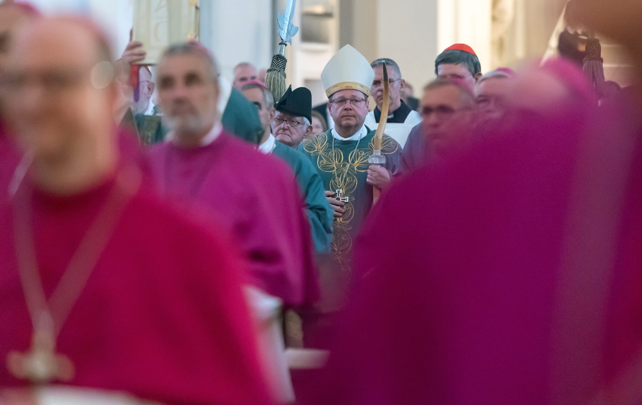Fulda (Germany), 22/09/2020.- Chairman of the German Episcopal Conference, Cardinal Georg Baetzing (C) leads the opening mass of the German Bishops Conference (Deutsche Bischofskonferenz) in the Fulda Cathedral, in Fulda, Germany, 22 September 2020. From 22 to 24 September the German bishops will meet in Fulda to discuss reforms in the church. (Abierto, Lanzamiento de disco, Alemania) EFE/EPA/RONALD WITTEK