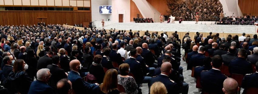 “Queridos oficiales y agentes, muchas gracias por su valioso servicio, caracterizado por la diligencia, la profesionalidad y el espíritu de sacrificio. Mi gratitud se extiende también a su compromiso de acompañarme en mis desplazamientos en Roma y en las visitas a las diócesis o comunidades de Italia. Es una tarea difícil, que requiere discreción y equilibrio, para asegurar que los itinerarios del Papa no pierdan su carácter específico de encuentro con el Pueblo de Dios. Por todo esto, una vez más les estoy agradecido”, ha afirmado el Papa tras hacer un repaso histórico de las relaciones entre Italia y la Santa Sede.