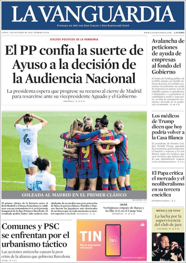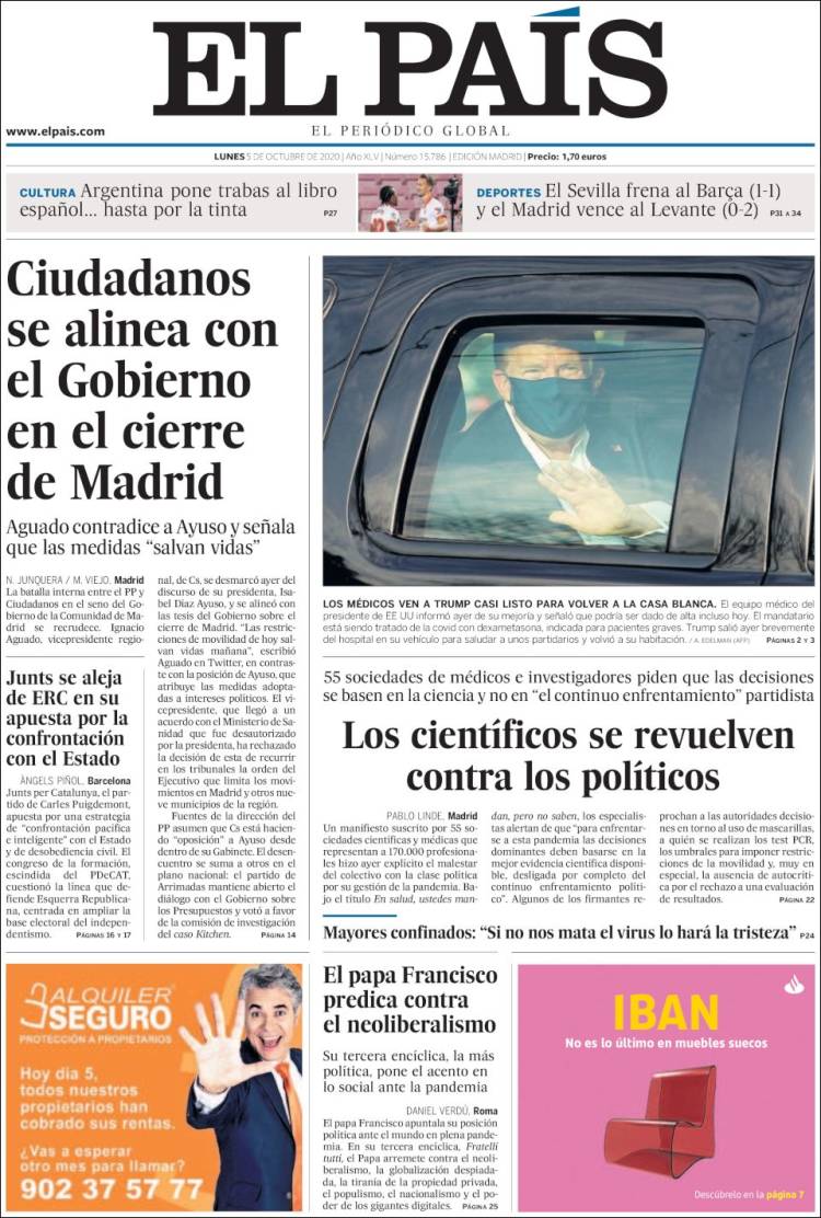 ‘El papa Francisco predica contra el neoliberalismo’ titula El País en la crónica que firma el corresponsal en el Vaticano, Daniel Verdú, que destaca que su tercera encíclica –tras ‘Lumen fidei’, escrita a cuatro manos con Benedicto XVI, y ‘Laudato si”– es “la más política” y pone el acento “en lo social ante la pandemia”. “El Papa apuntala su posición política ante el mundo en plena pandemia y arremete contra el neoliberalismo, la globalización despiadada, la tiranía de la propiedad privada, el populismo, el nacionalismo y el poder de los gigantes digitales”, según resume el periodista.