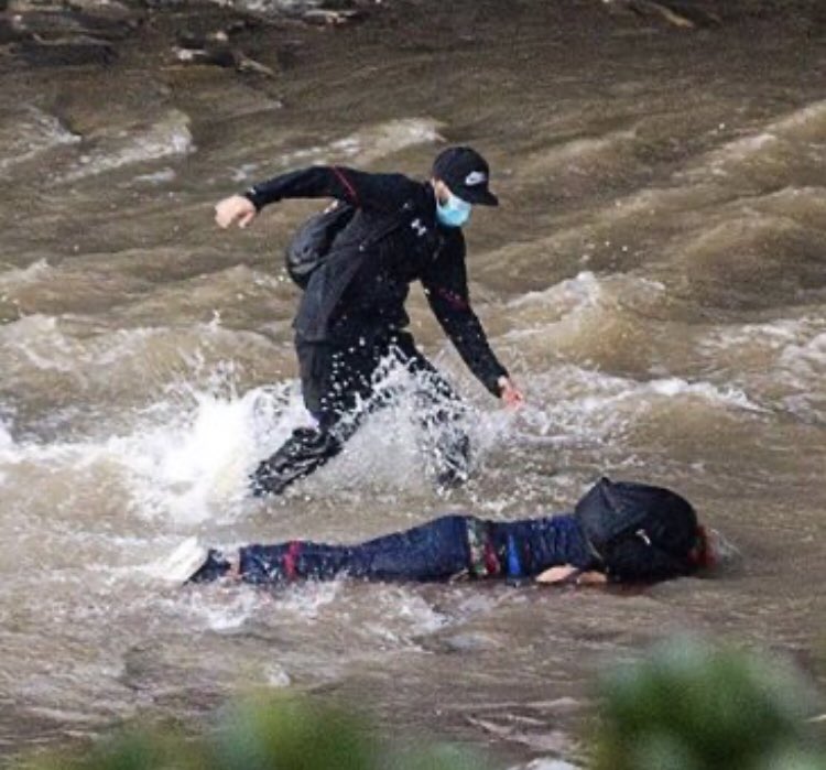 El joven quedó inmóvil en el lecho del río desde donde fue rescatado por civiles y voluntarios de salud que apoyan a los manifestantes, quienes lo trasladaron una clínica de salud cercana. La foto del jesuita Vicuña, en Twitter, muestra a la primera persona que acude en su ayuda.
