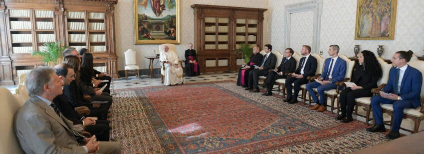 “El trabajo que realizan es particularmente cercano a mi corazón. En efecto, está íntimamente relacionado con la protección de la vida, con la convivencia pacífica del género humano en la tierra y con una financiación que no oprima a los más débiles y necesitados: todo está vinculado”, ha comenzado el Papa diciéndoles.