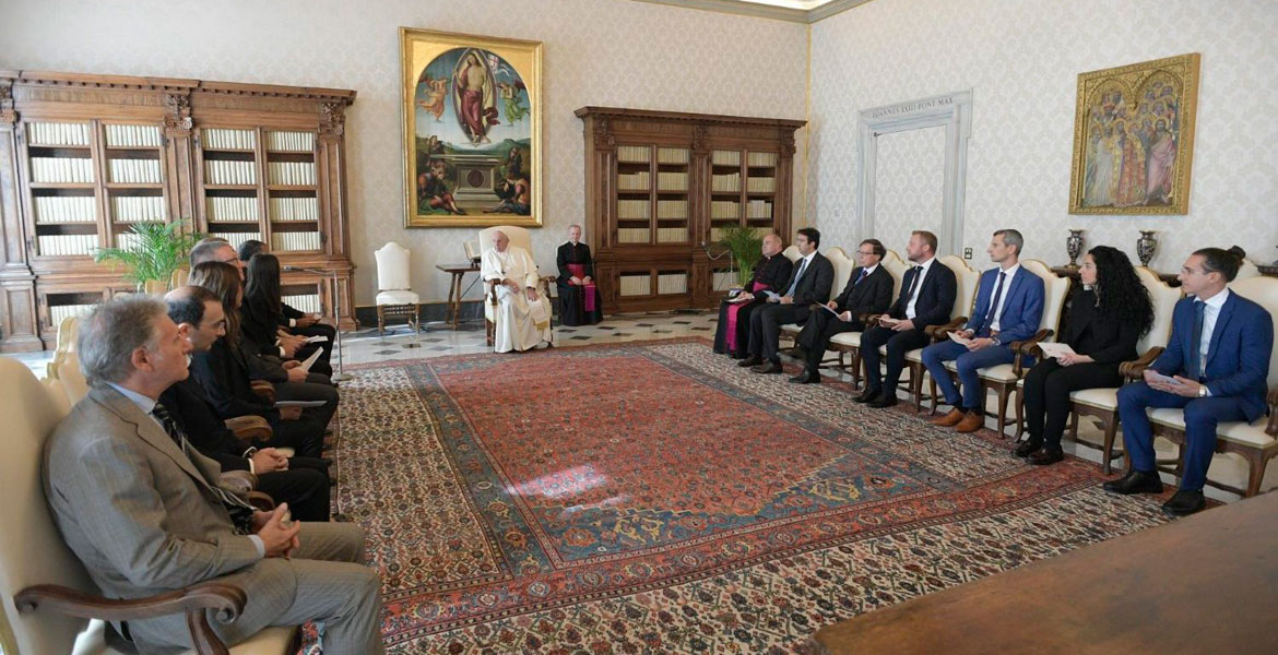 “El trabajo que realizan es particularmente cercano a mi corazón. En efecto, está íntimamente relacionado con la protección de la vida, con la convivencia pacífica del género humano en la tierra y con una financiación que no oprima a los más débiles y necesitados: todo está vinculado”, ha comenzado el Papa diciéndoles.