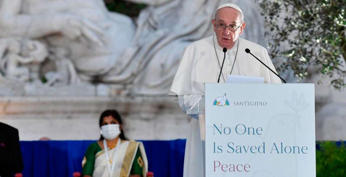 “Poner fin a la guerra es el deber impostergable de todos los líderes políticos ante Dios. La paz es la prioridad de cualquier política. Dios le pedirá cuentas a quienes no han buscado la paz o han fomentado las tensiones y los conflictos durante tantos días, meses y años de guerra que han golpeado a los pueblos”. Con este enérgico mensaje se ha presentado esta tarde el papa Francisco en la plaza del Campidoglio, en el corazón de Roma, ante el resto de líderes religiosos invitados al 34º Encuentro de Oración por la Paz, bajo el lema ‘Nadie se salva solo-Paz y Fraternidad’ y promovido por la Comunidad de Sant’Egidio.