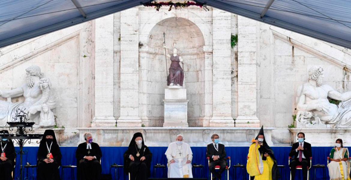La elección de este lugar para hacer el encuentro no ha sido casual. De hecho, como se ha recordado, “en esta plaza del Campidoglio, poco después del mayor conflicto bélico que la historia recuerde, las naciones que se habían enfrentado estipularon un pacto, fundado sobre un sueño de unidad, que posteriormente se llevó a cabo: la Europa unida”. “Hoy, en este tiempo de desorientación, golpeados por las consecuencias de la pandemia de Covid-19, que amenaza la paz aumentando las desigualdades y los miedos, decimos con fuerza: nadie puede salvarse solo, ningún pueblo, nadie“, afirman las religiones.