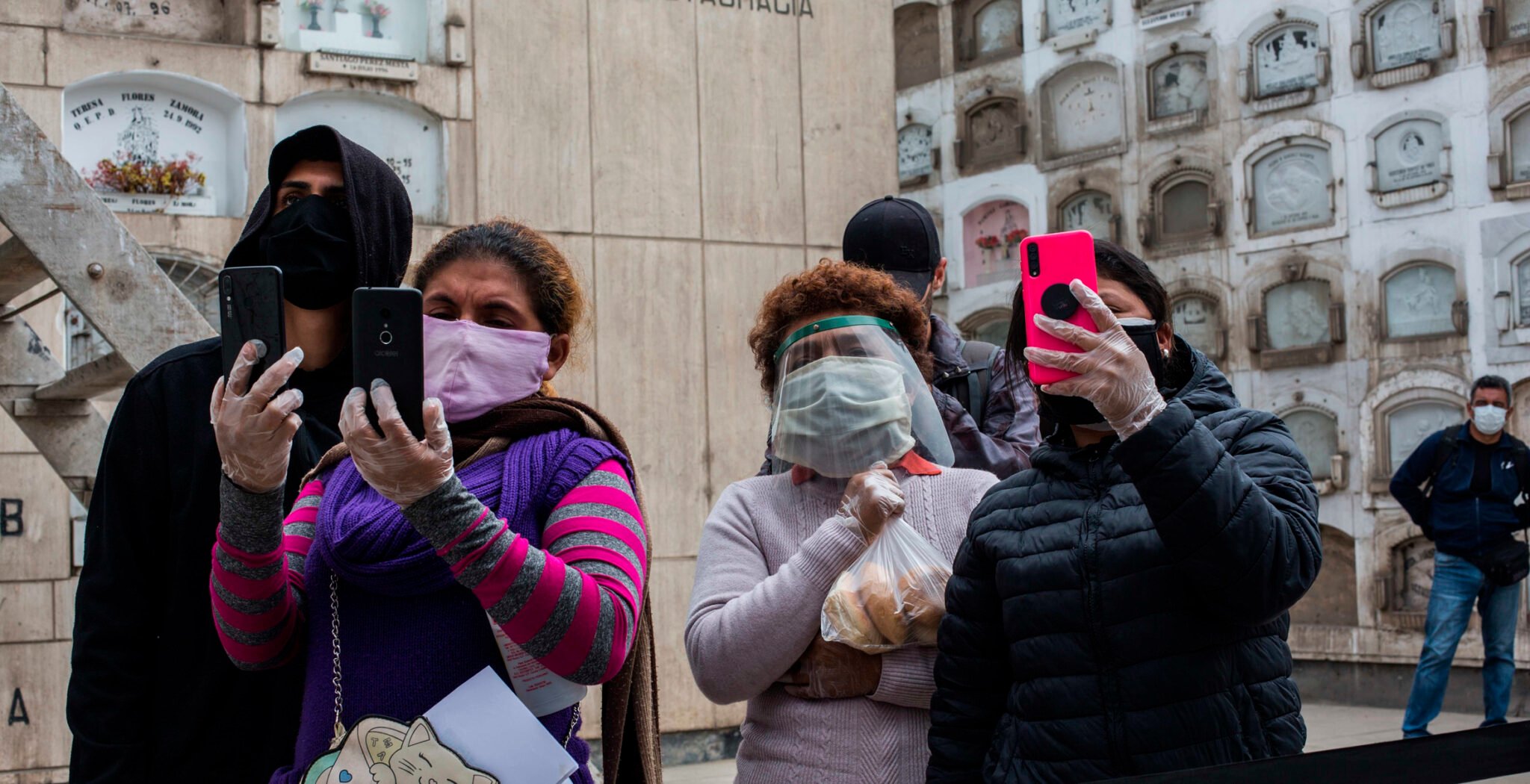 AME2292. LIMA (PER⁄), 25/05/2020.- Familiares de un fallecido por COVID-19 graban y transmiten por videollamada el funeral este lunes en el cementerio El ¡ngel en Lima (Per˙). EFE/Sergi Rugrand