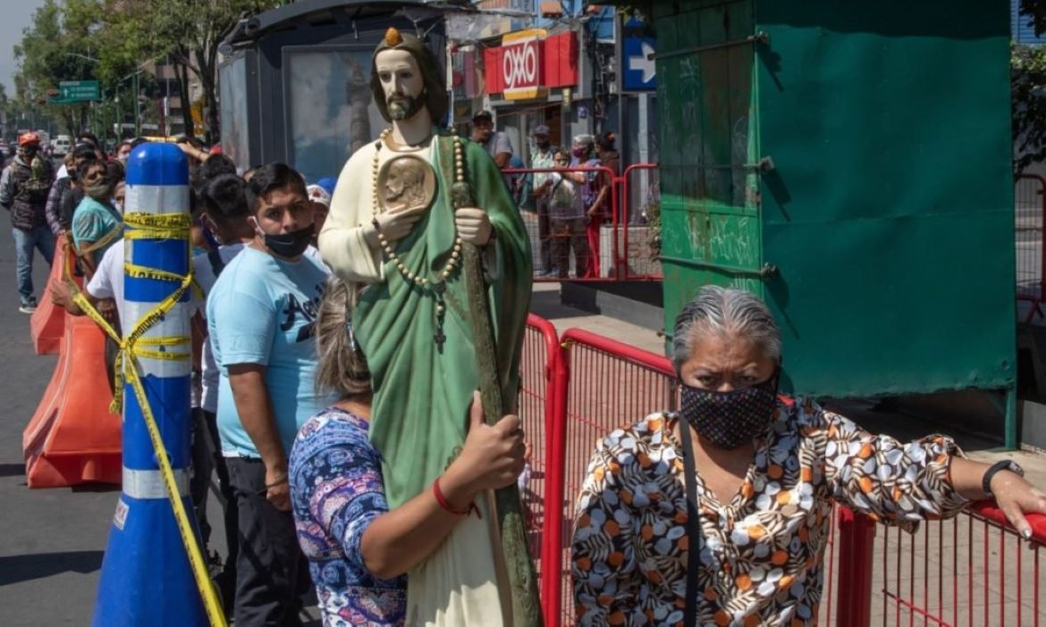 A pesar del llamado que hizo la iglesia de San Hipólito y San Casiano en la Ciudad de México, para que este 28 de octubre, debido a la pandemia de Covid-19, los devotos del “abogado de las causas difíciles” no acudieran al templo con motivo de su fiesta litúrgica, miles de personas se han congregado en las inmediaciones del templo.