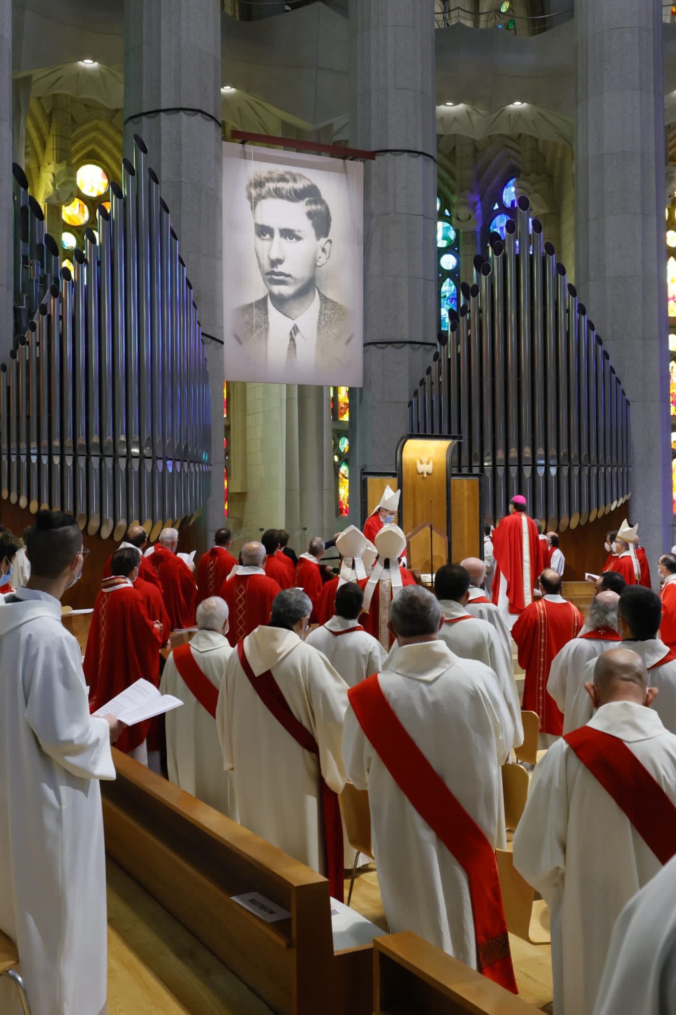 En el marco incomparable de la Sagrada Familia –precisamente en el día que se cumplen 10 años desde su dedicación como templo por Benedicto XVI–, el cardenal Juan José Omella ha presidido la ceremonia de beatificación del joven mártir Joan Roig Diggle, nacido en la archidiócesis de Barcelona y martirizado por su fe el día 12 de septiembre de 1936. Una celebración en la que, cumpliendo las respectivas restricciones sanitarias, han concelebrado, entre otros, el arzobispo emérito, el cardenal Lluís Martínez Sistach o el nuncio apostólico, Bernardito Auza.