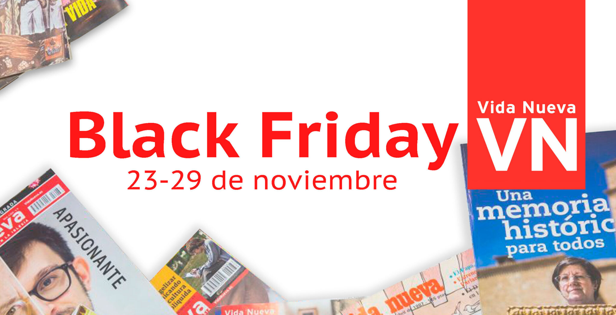 El Black Friday llega a Vida Nueva. Te invitamos a que te sumes a la familia VIDA NUEVA con un descuento del 20% del 23 al 29 de noviembre. ¿Cómo? Con una suscripción anual a nuestra revista. Cada semana podrás disfrutar en casa de nuestra publicación en papel para leerla con más detenimiento, ahondar en nuestras meditaciones, profundizar en los Pliegos… Además, podrás acceder al visor online compatible con todos los dispositivos.