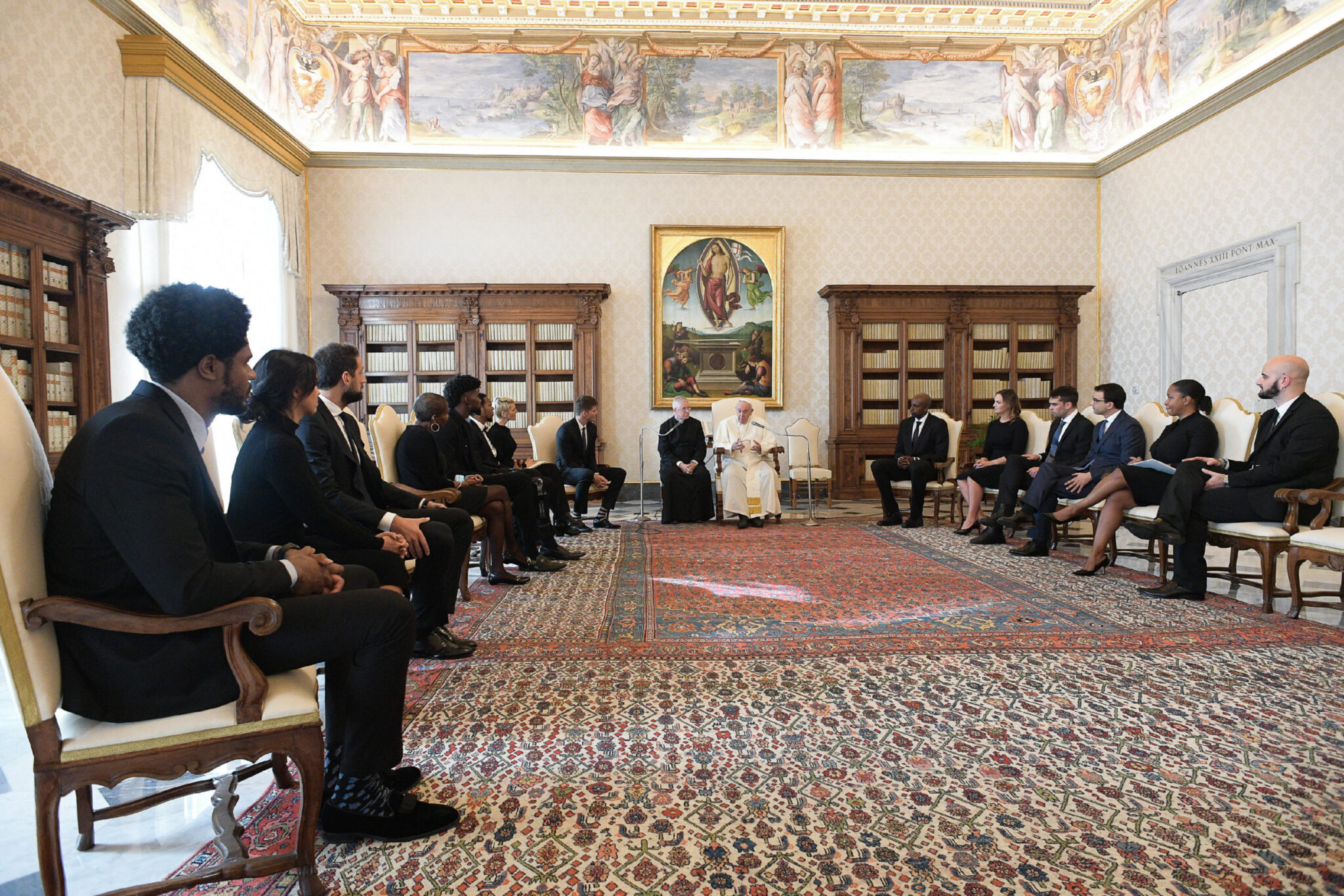 La Asociación Nacional de Jugadores de Baloncesto (NBPA), que representa a todos los jugadores profesionales de la Asociación Nacional de Baloncesto (NBA), ha presentado al pontífice sus proyectos sociales, a los que visibilizan gracias al escaparate que supone la liga americana. Completaron la representación los managers de la NBA Michele Roberts, Sherrie Deans y Matteo Zuretti, y algunos familiares.