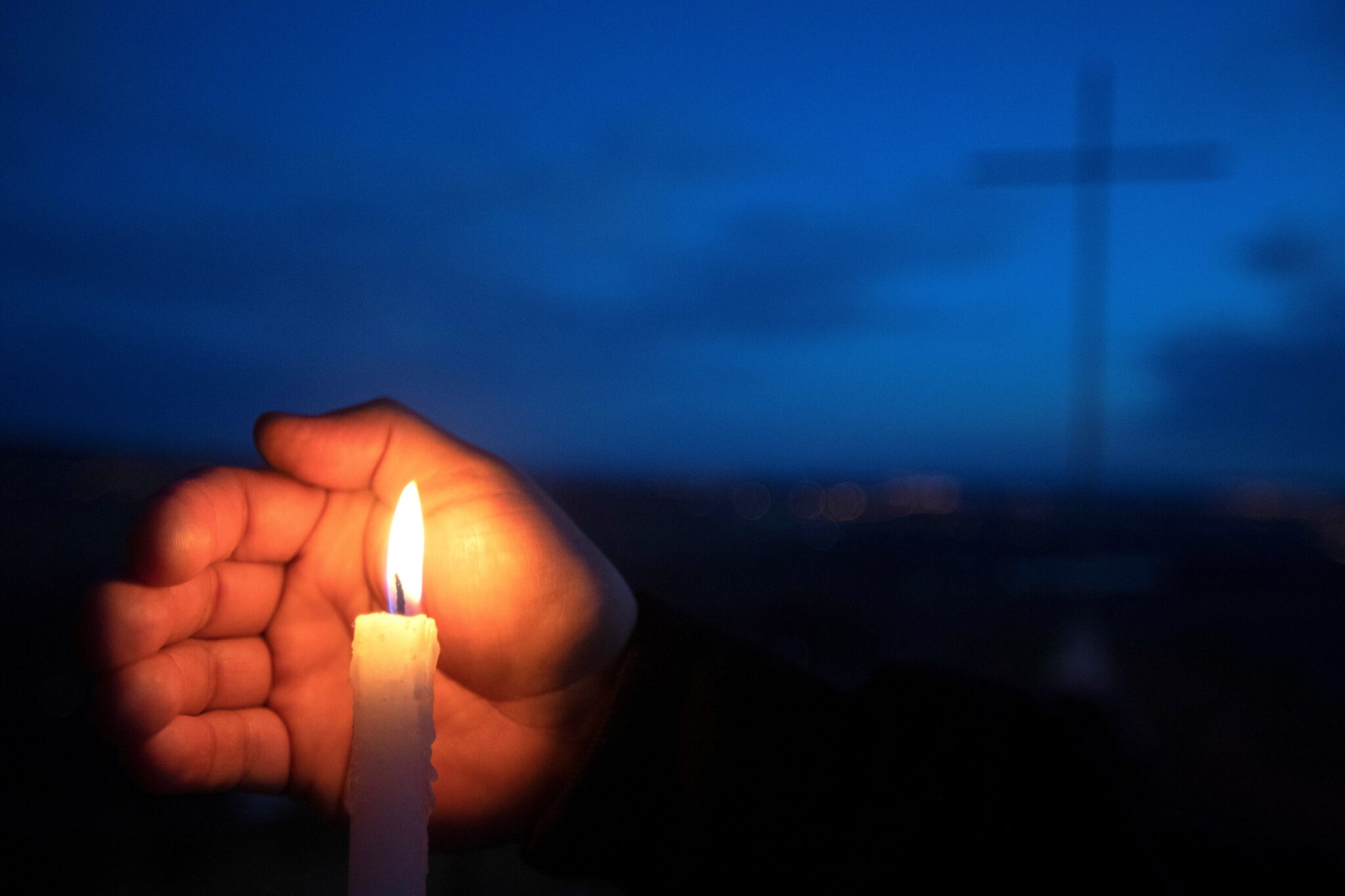 -FOTODELDIA- BRA102. BRASILIA (BRASIL), 10/04/2020. -Detalle de una mano protegiendo una vela, mientras fieles visitan Morro da Capelinha en Planaltina, que está cerrado por la policía debido a la pandemia de coronavirus, este Viernes Santo cerca de Brasilia (Brasil). Unas 250 mil personas iban a participar en el Vía Crucis, que fue cancelado. EFE/ Joédson Alves