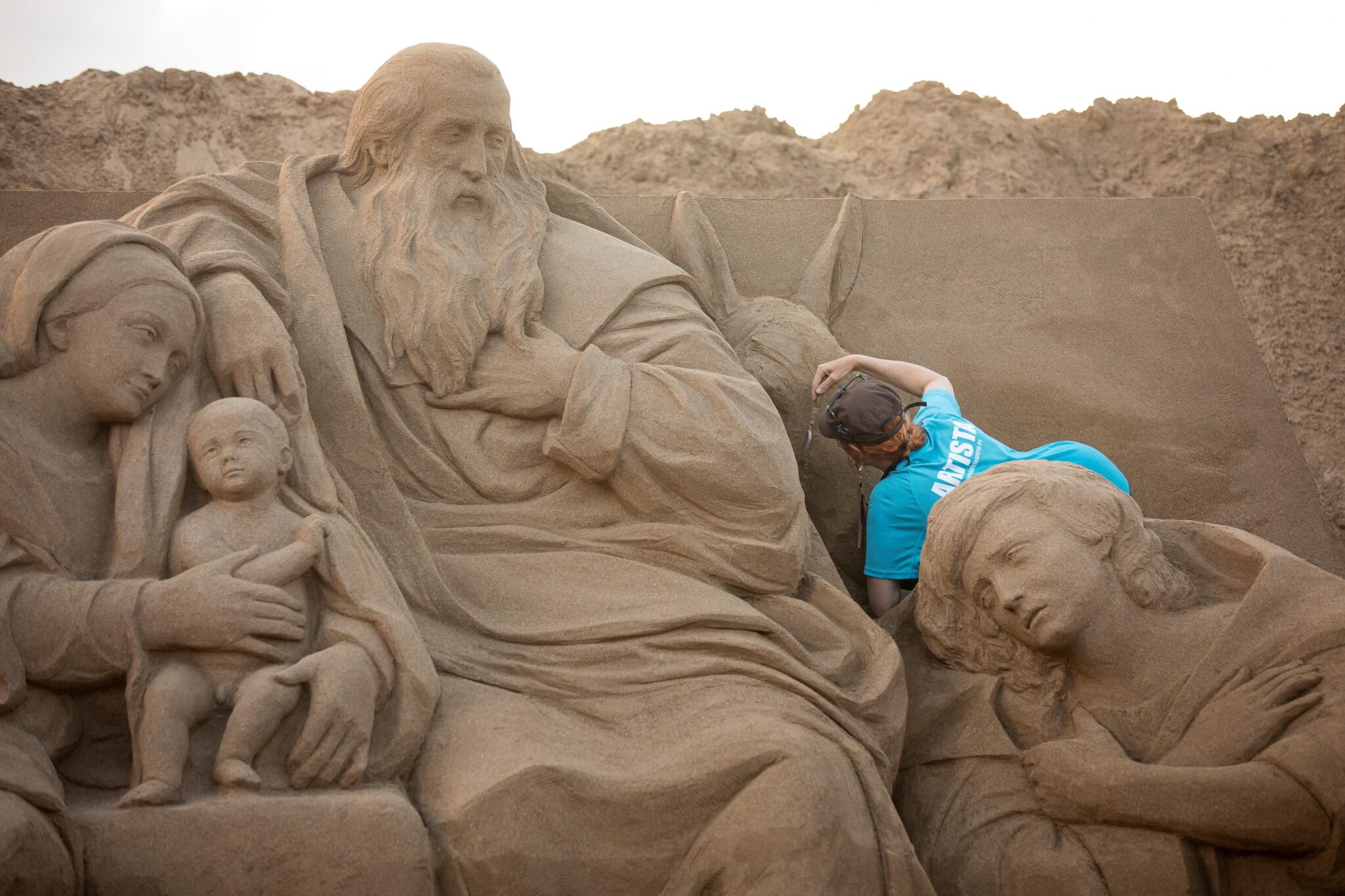 GRAFCAN2644. LAS PALMAS DE GRAN CANARIA, 04/12/2020.- La playa de Las Canteras de Las Palmas de Gran Canaria ha inaugurado este viernes su tradicional belén de arena, uno de los recursos icónicos navideños de la ciudad, que este año rinde un homenaje a los trabajadores sanitarios y al escritor Benito Pérez Galdós, de quien se celebra el centenario de su muerte. EFE/Quique Curbelo