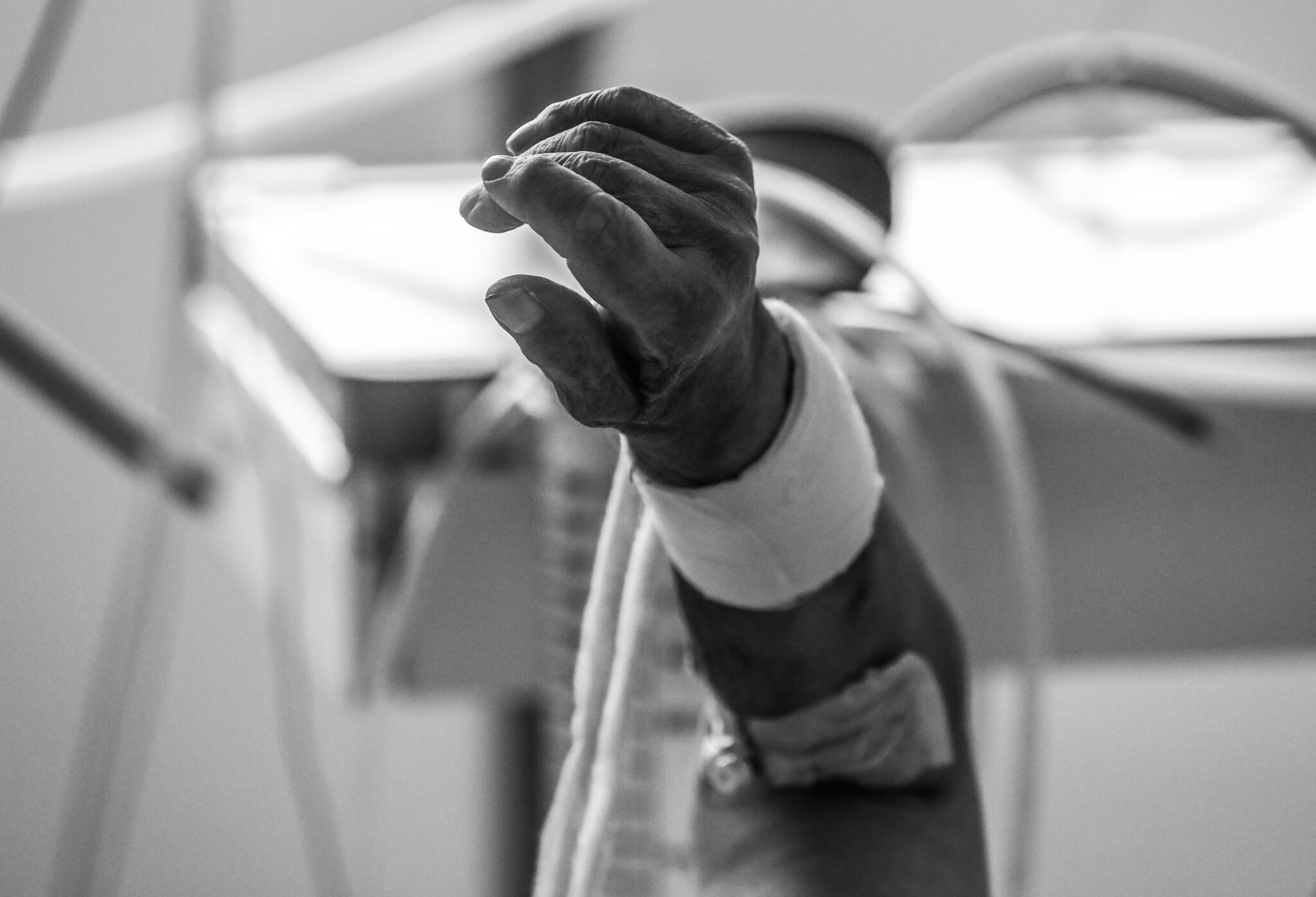 Istanbul (Turkey), 07/12/2020.- A COVID-19 patient reacts during his treatment inside a sealed Intensive Care Unit (ICU) room at the Prof. Dr. Cemil Tascioglu City Hospital, in Istanbul, Turkey, 07 December 2020 (issued 09 December 2020). According to latest reports, Turkey recorded 33,198 new coronavirus infections on 08 December 2020, the highest daily number in Europe. Since the start of the Covid-19 pandemic more than 15,000 people have died in Turkey, including 211 health workers, who take care of coronavirus patients, according to Turkey Medical Association. Turkish government in November 2020 has signed a contract to buy 50 million doses of Chinese manufacturer Sinovac coronavirus vaccine 'ÄòCoronaVac'Äô, to be delivered in batches between December 2020 and February 2021. Turkey is also in talks to increase the amount of coronavirus vaccines from Pfizer and BioNTech companies, from initial one million doses. Healthcare workers, people aged 65 and above, disabled people, people who stay in shelters and those living in crowded places will be vaccinated in the first stage, Turkish Health Ministry said. (Turquía, Estanbul) EFE/EPA/SEDAT SUNA ATTENTION: This Image is part of a PHOTO SET