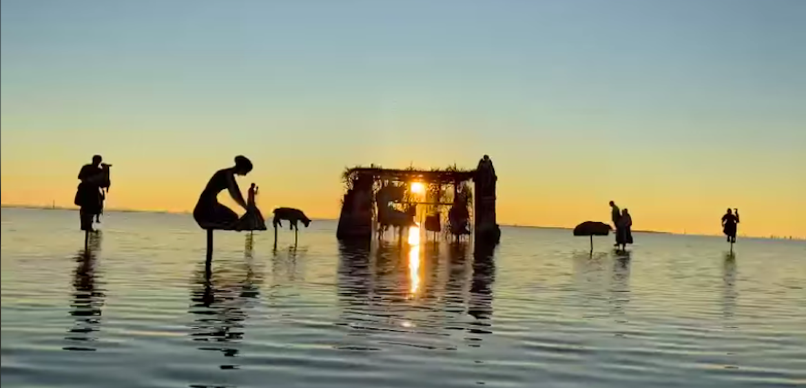 Y es que en Burano, concretamente en la laguna norte, el frutero –y artista– Francesco Orazio ha elaborado un belén que parece flotar sobre las aguas.