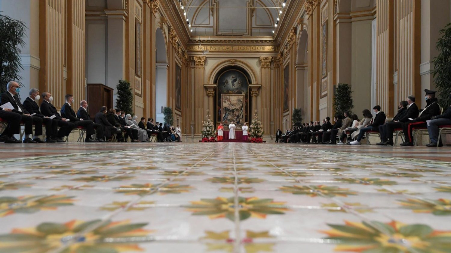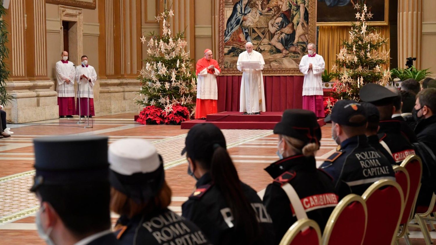 “El nacimiento es siempre una fuente de esperanza, es la vida que florece, es una promesa de futuro. Y este Niño, Jesús, ‘ha nacido para nosotros’: un nosotros sin fronteras, sin privilegios ni exclusiones”, ha comenzado Francisco poniendo de manifiesto en su discurso. “Es el ‘hijo’ que Dios ha dado a toda la familia humana”, destacó, añadiendo que “gracias a este Niño, todos podemos dirigirnos a Dios llamándolo ‘Padre”, “Papá’”.