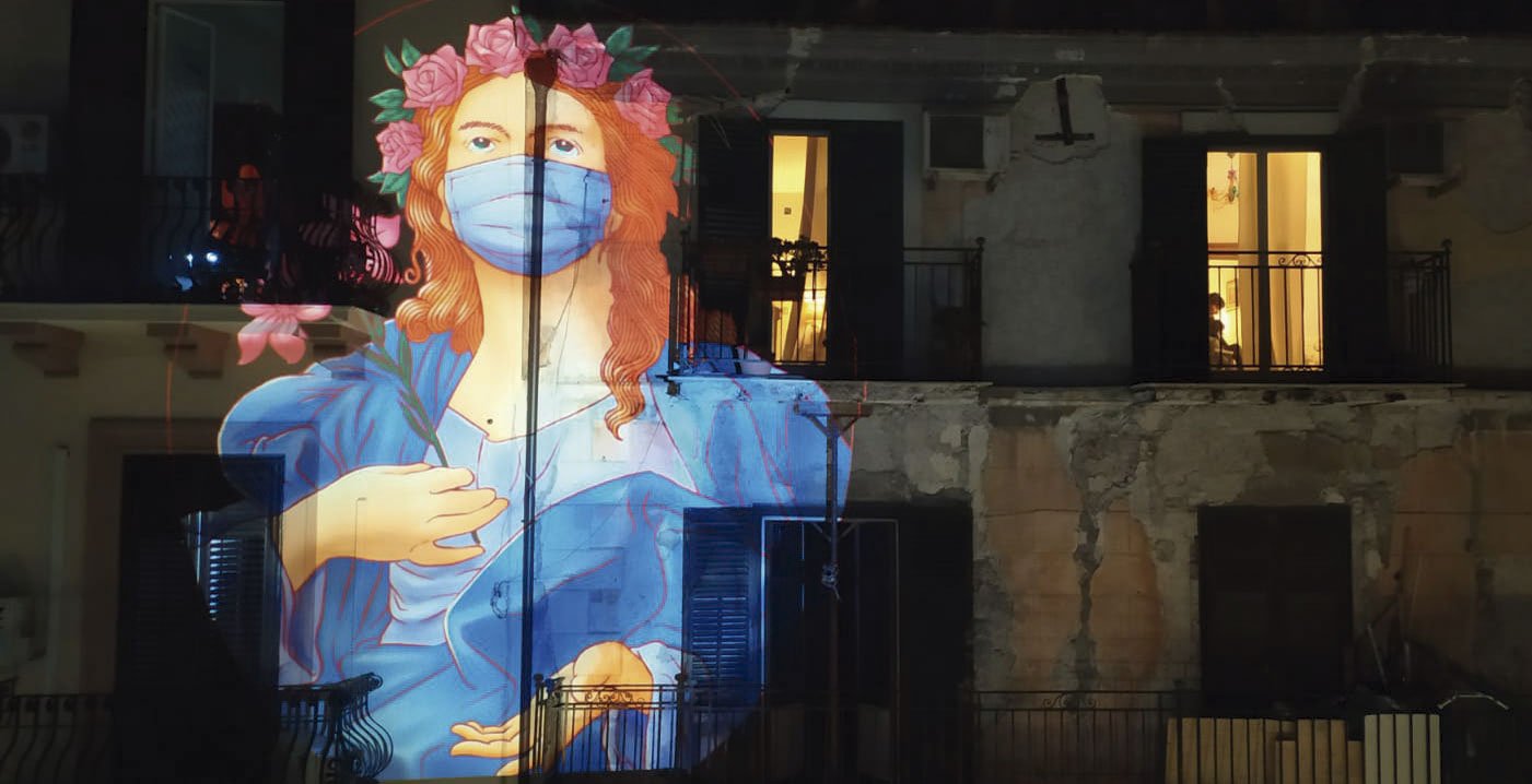 En marzo, durante el primer confinamiento, algunos artistas proyectaron en las fachadas de los edificios cercanos a la catedral (donde se guardan las reliquias) la imagen de la Santuzza con una mascarilla quirúrgica en el rostro. Una forma de encomendarse a la patrona que parece más una invitación a protegerse y a protegerla.