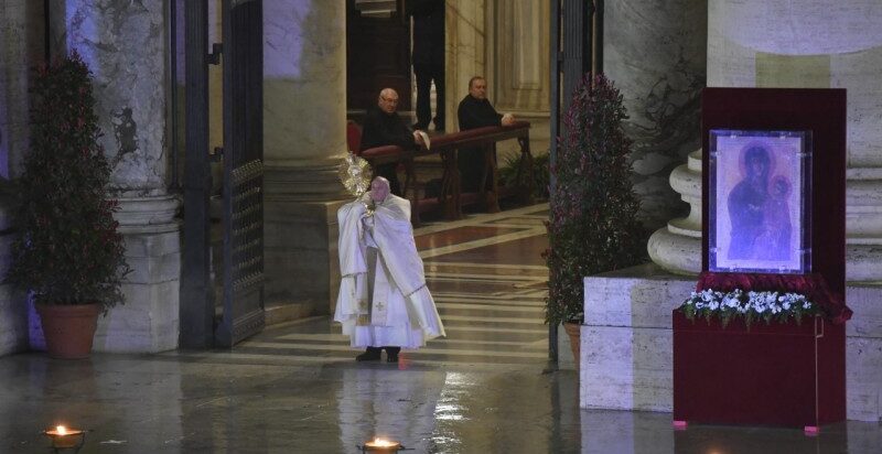 El 27 de marzo de 2020 el papa Francisco impartió su bendición más solemne, la reservada solo para los papas: la bendición ‘Urbi et orbi’. No era Navidad, ni Pascua ni el primer día de Bergoglio en la sede de Pedro. La pandemia del coronavirus propició un momento de oración inédito y una bendición especial ante una Plaza de San Pedro vacía y un pontífice avanzando hasta el atrio de la basílica bajo la lluvia.