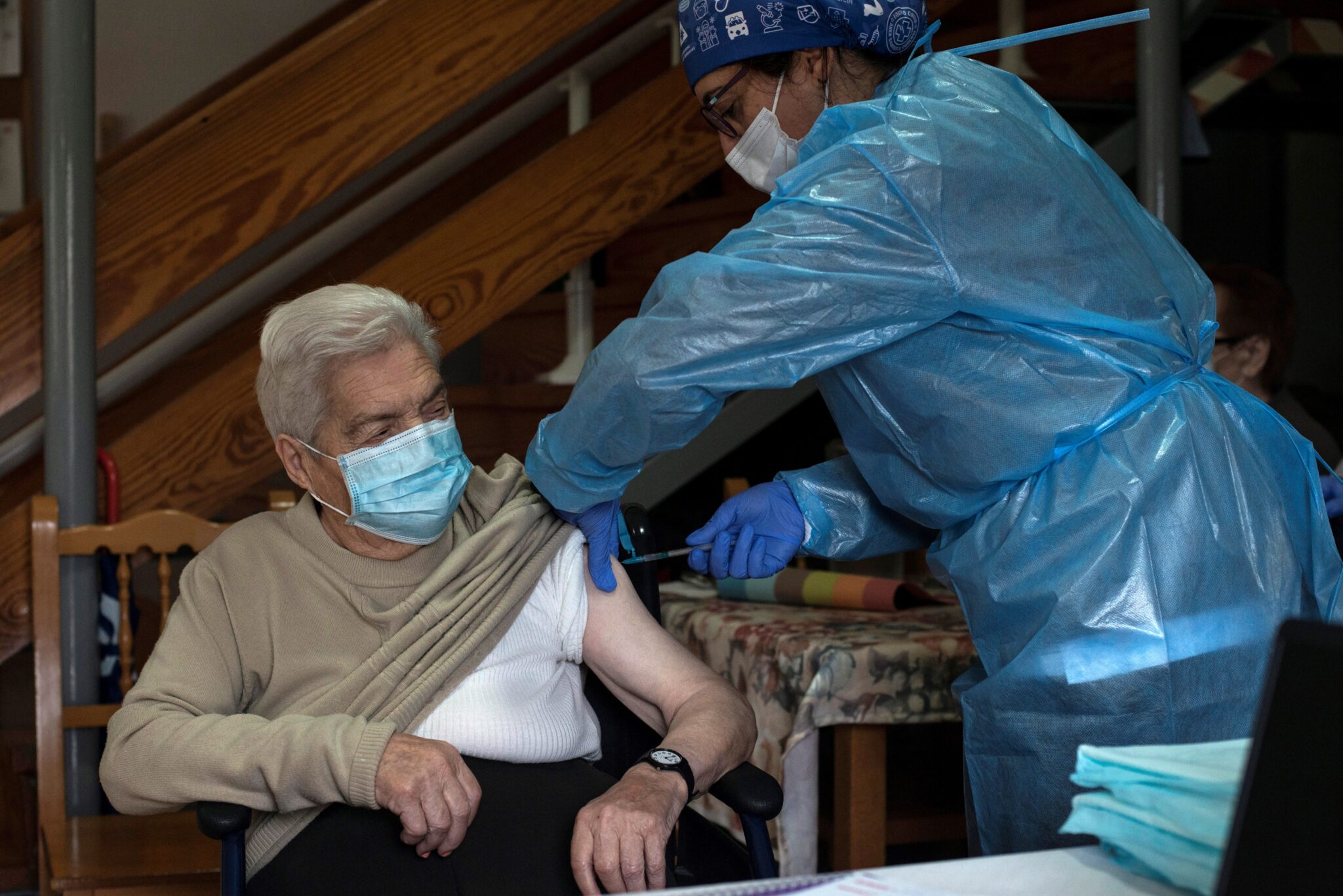 GRAF3535. ALLARIZ (OURENSE), 30/12/2020.- Una sanitaria vacuna cotra el coronavirus a Rosa Grande, de 93 años, residente de la vivienda comunitaria Agarimo de Allariz, hoy miércoles durante la campaña de vacunación en Galicia. EFE / Brais Lorenzo